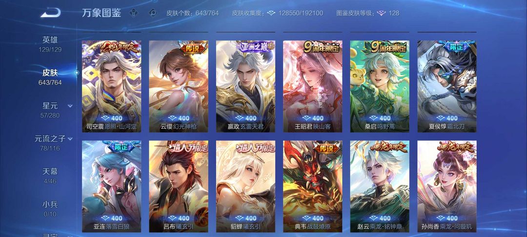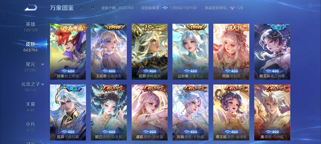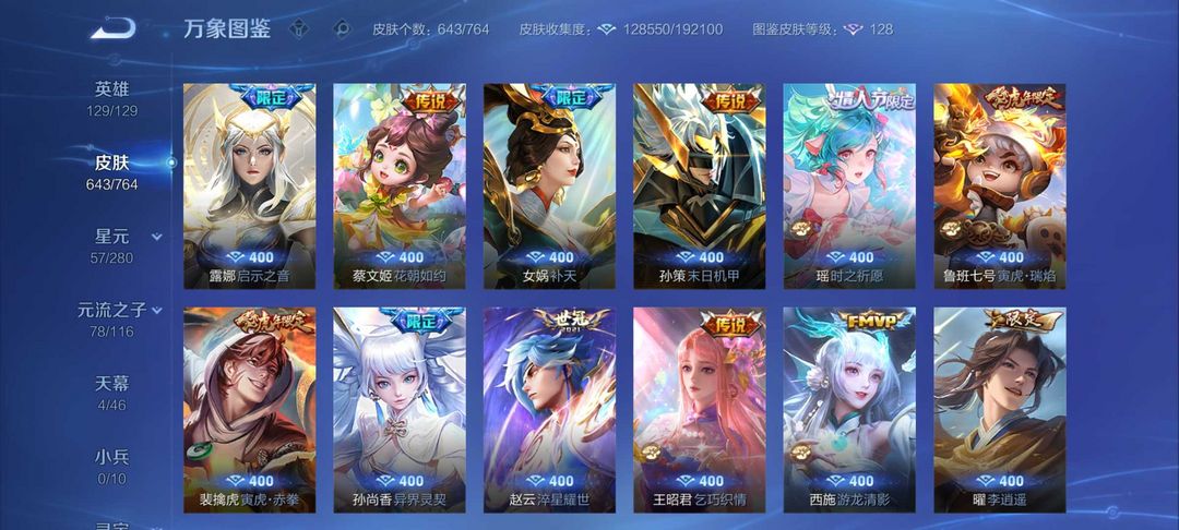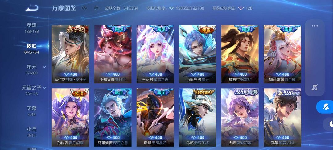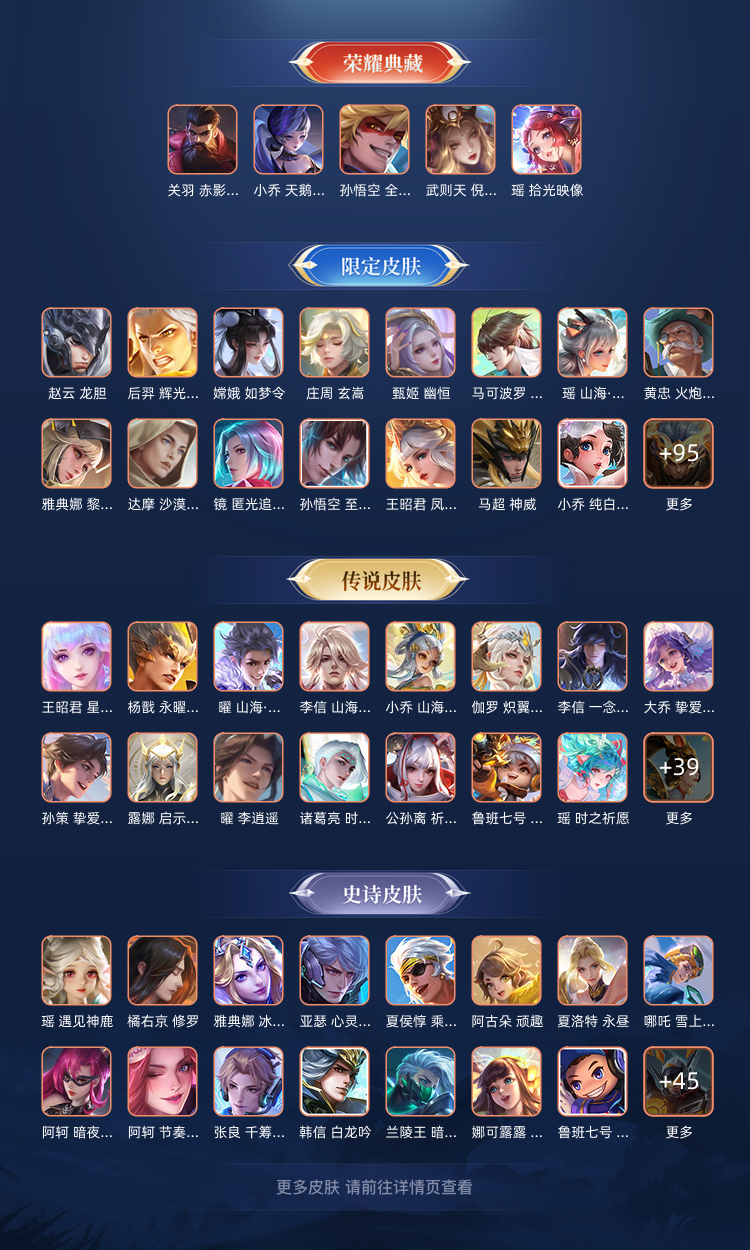 643皮肤❤️女号❤️6典藏3无双105传说皮❤️昭君FMVP螭龙剑大耳狗库洛米满蛇年❤️紫瑶❤️瑶
