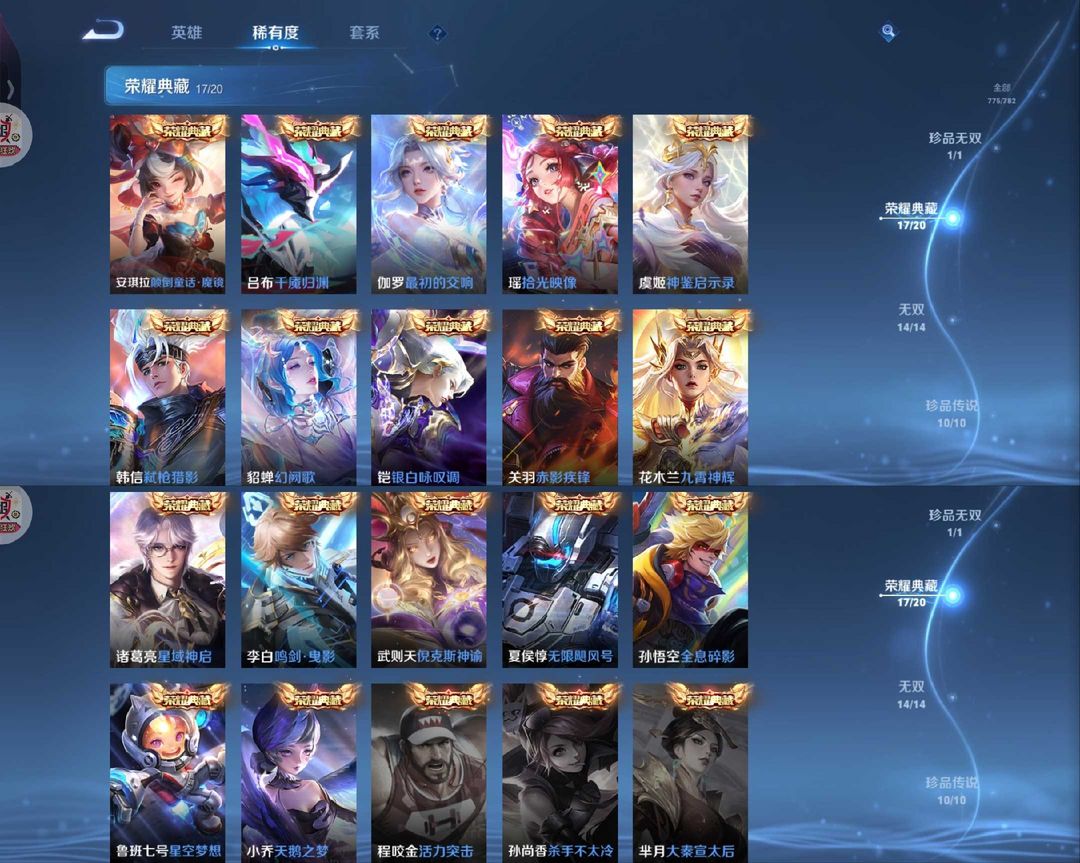 〖V11 776〗不禁言·新皮全有〖安琪拉典藏❤李信无双❤伽罗珍品〗①⑦典藏✨满无双✨满珍品✨满传说