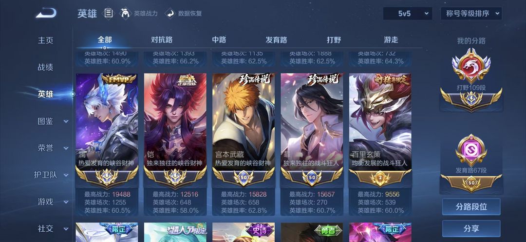 前冠军职业选手账号✨主页800万热度✨二万战镜露娜老虎澜马可公孙离 ✨6大顶流帅标✨大国打野分路