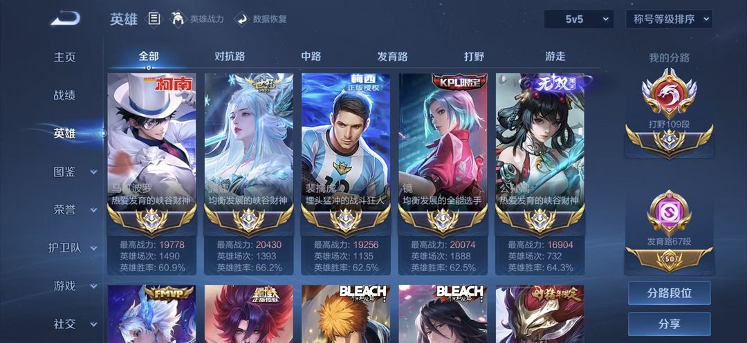 装备描述:前冠军职业选手账号✨主页800w热度✨极品帅号打野的天 ✨109段大国打野✨二万战镜露娜老虎澜马可公孙离✨6大顶流帅标