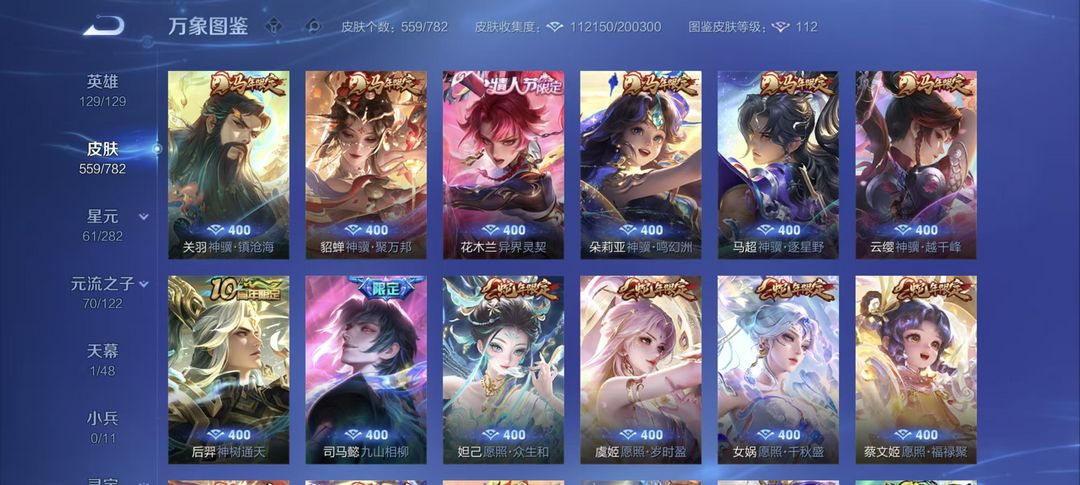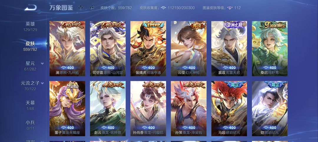 559皮肤⭐️马年全限定⭐三典藏五无双⭐️无相⭐️九霄神辉⭐鸣剑曳影⭐怪盗基德⭐凤求凰