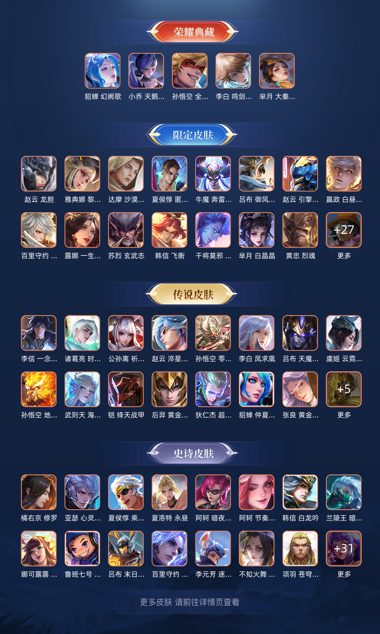 限制: 撤单率<50%才可租用此帐号装备描述:✅ 全英雄解锁:129/129 全英雄,全位置爽玩,无任何限制! ✅ 荣耀典藏(5 款): 貂蝉・幻阙歌、李白・鸣剑曳影、孙悟空・全息碎影、小乔・天鹅之梦、芈月・大秦宣太后 ✅ 无双皮肤(1 款): 韩信・群星魔术团 ✅ 珍品传说(1 款): 安琪拉・酷洛米之心 ✅ 星传说(3 款): 狄仁杰・星际治安官、孙悟空・零号雷霆、貂蝉・金色仲夏夜 ✅ 热门传说皮肤(部分展示): 李信・一念神魔、曜・云鹰飞将、花木兰・冠军飞将、宫本・地狱之眼、孙尚香・末日机甲、貂蝉・仲夏夜之梦、李白・凤求凰等 ✅ 额外内容:73 级精英收藏家,图鉴等级 88 级,369 款皮肤,5 个全皮肤英雄