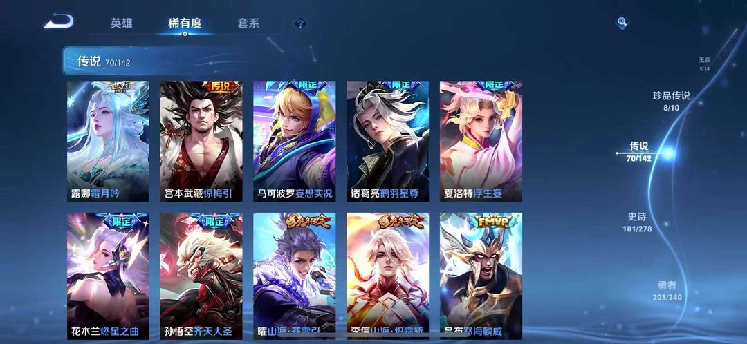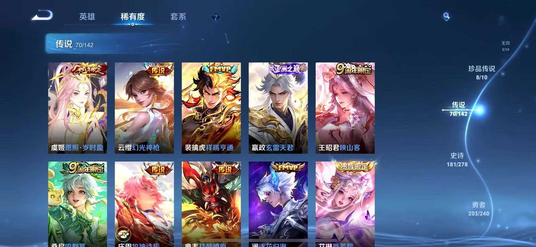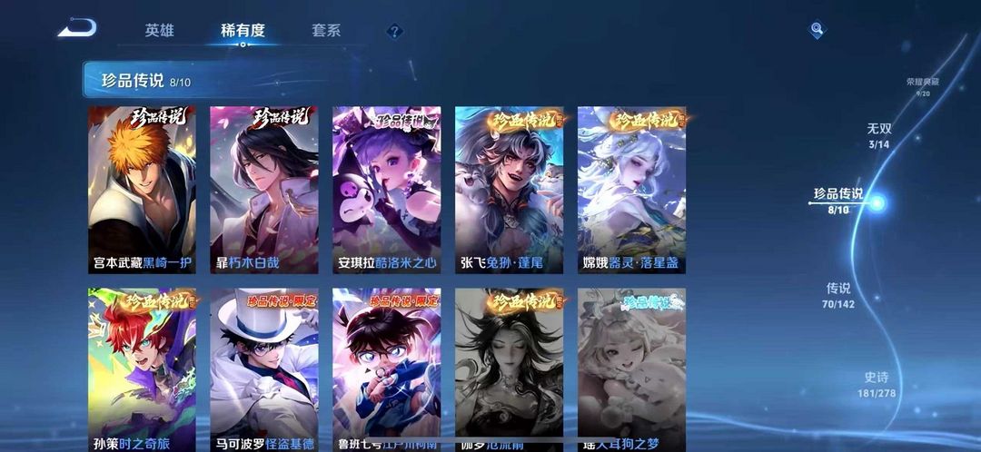 v10❤️553皮肤❤️10典藏❤️70传说❤️8珍品传说❤️3无双❤️怪盗基德❤️器灵螭龙剑