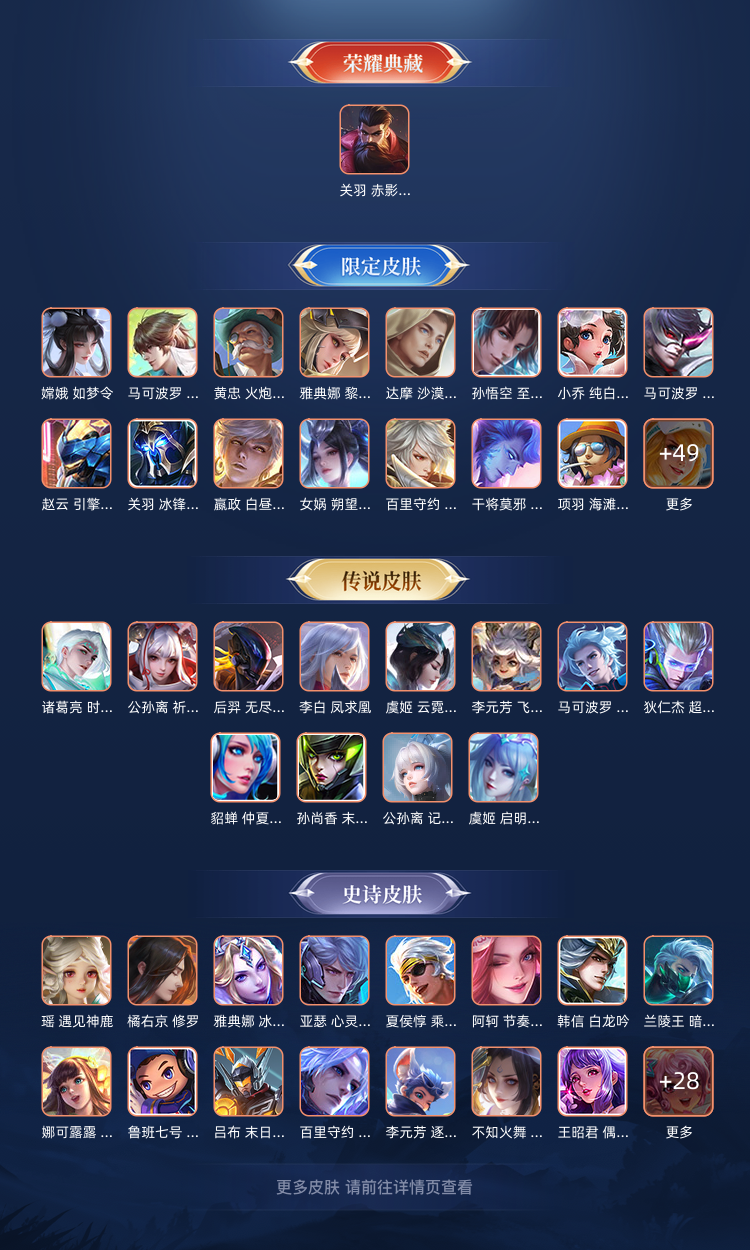 限制: 撤单率<90%才可租用此帐号装备描述:毁号,涉及毁坏虚拟财产罪及计算机安全罪,请文明游戏素质游戏,让我们共建美好租号平台 本游戏账号: 英雄多皮肤多。典藏皮肤3个感受典藏皮肤带来的优质体验快感FMVP皮肤7个尽情享受FMVP皮肤带来的主角光环 私人所属英雄皮肤有:孙尚香 杀手不太冷花木兰 九霄神辉铠 银白咏叹调百里守约 碎云孙尚香 音你闪耀孙尚香 末日机甲孙尚香 异界灵契关羽 武圣李信 山海·炽霜斩李信 一念神魔李白 诗剑行诸葛亮 武陵仙君诸葛亮 鹤羽星尊孙悟空 齐天大圣孙悟空 零号·赤焰上官婉儿 神器·万象笔上官婉儿 妄想奇谈李元芳 飞鸢探春大乔 挚爱花嫁狄仁杰 超时空战士狄仁杰 神器·狴犴令狄仁杰 夜礼服假面王昭君 星穹之声王昭君 乞巧织情后羿 无尽星芒后羿 黄金射手座虞姬 云霓雀翎虞姬 无限倾心虞姬 启明星使娜可露露 前尘镜貂蝉 仲夏夜之梦瑶 时之祈愿不知火舞 绯月行澜 电玩·雷克斯孙策 挚爱之约蔡文姬 花朝如约鲁班七号 寅虎·瑞焰女娲 补