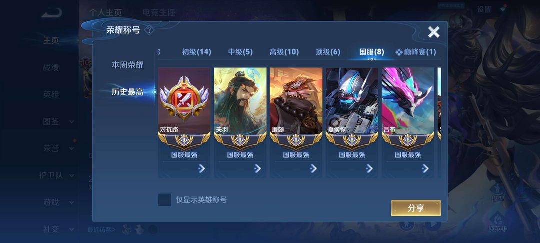 ❤绝版超稀有❤全国标logo五排显示✨120段大国标对抗路✨八大国标✨热门大国关羽吕布夏洛特✨多皮肤