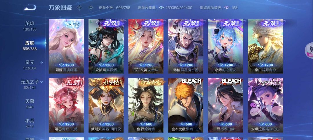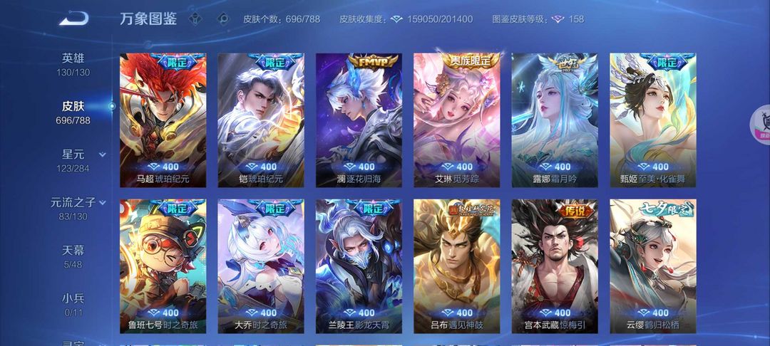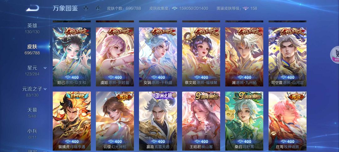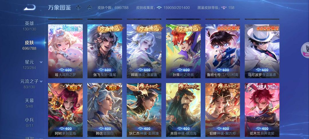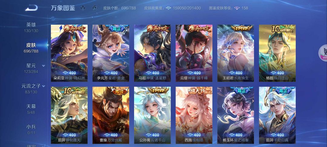 696皮肤❤馥梦繁花8典藏满珍品12无双❤126传说满马年限定16星传说❤李信无双无相神罪❤超值全新
