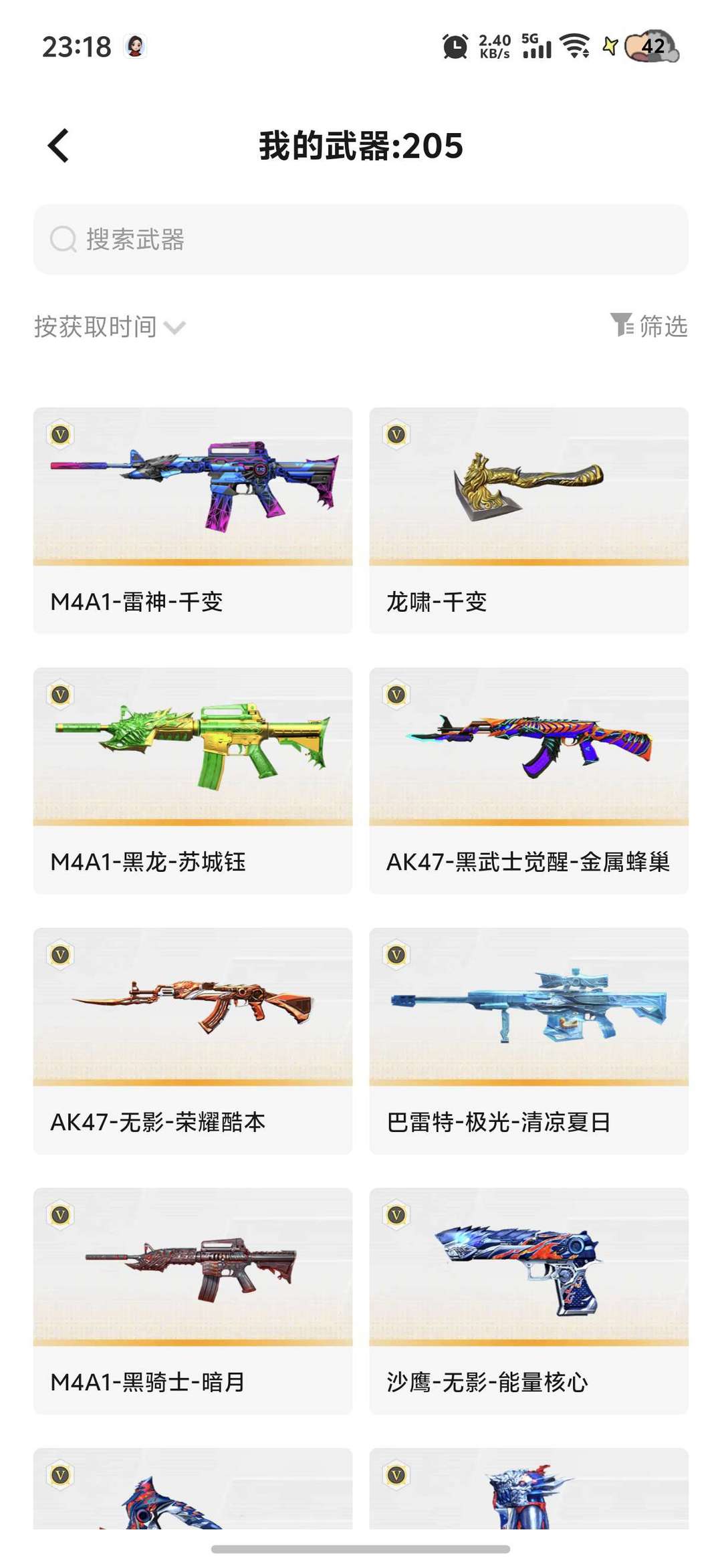 装备描述:200多把V,各种皮肤各种光效,枪神皮肤,各种套装,稀有武器!