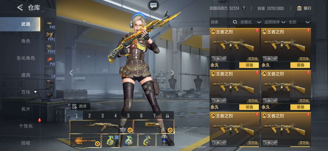 装备描述:多种王者武器,八套王者手雷,五百多把英雄级