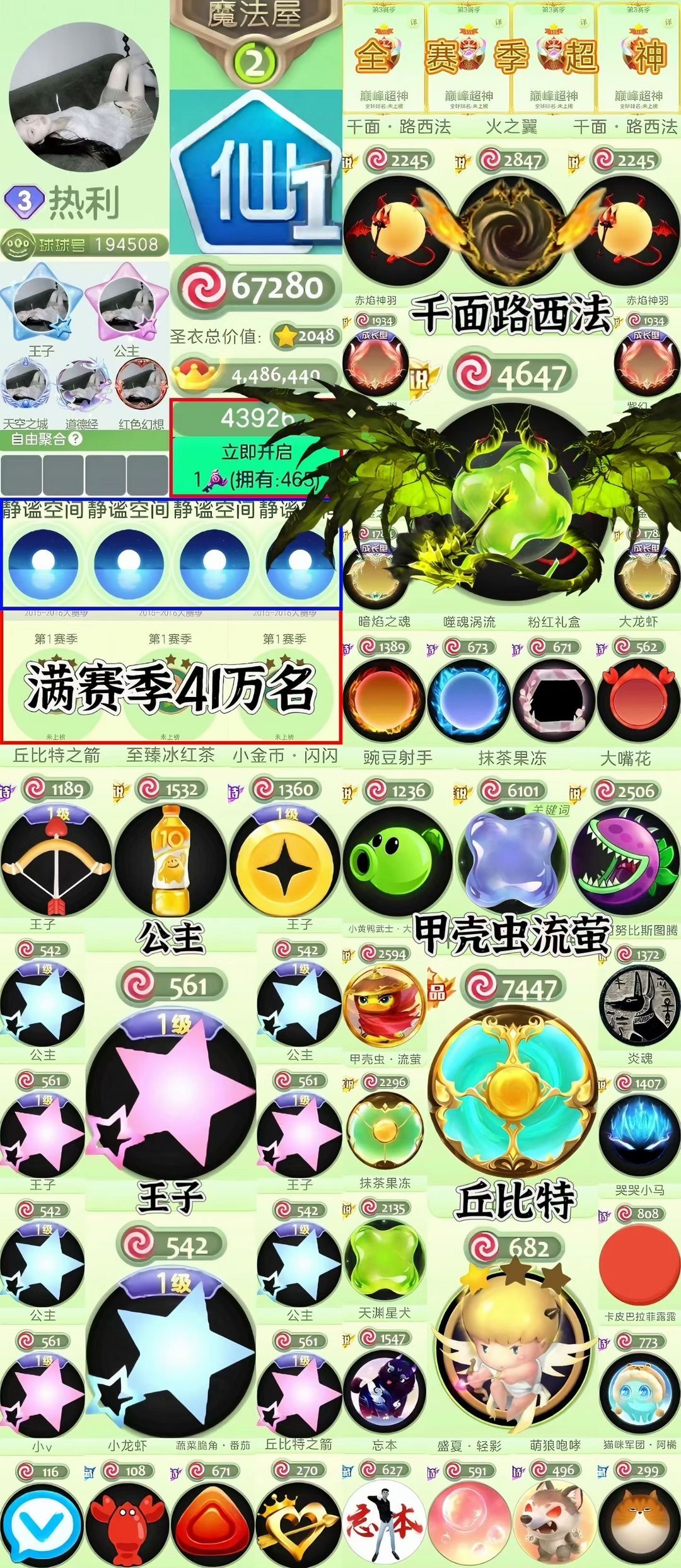 顶静谧空间*满赛季1.4万排名号/王子公主真老版/十字架漩涡满级甲壳虫/幻化路西法满级/老版本丘比特