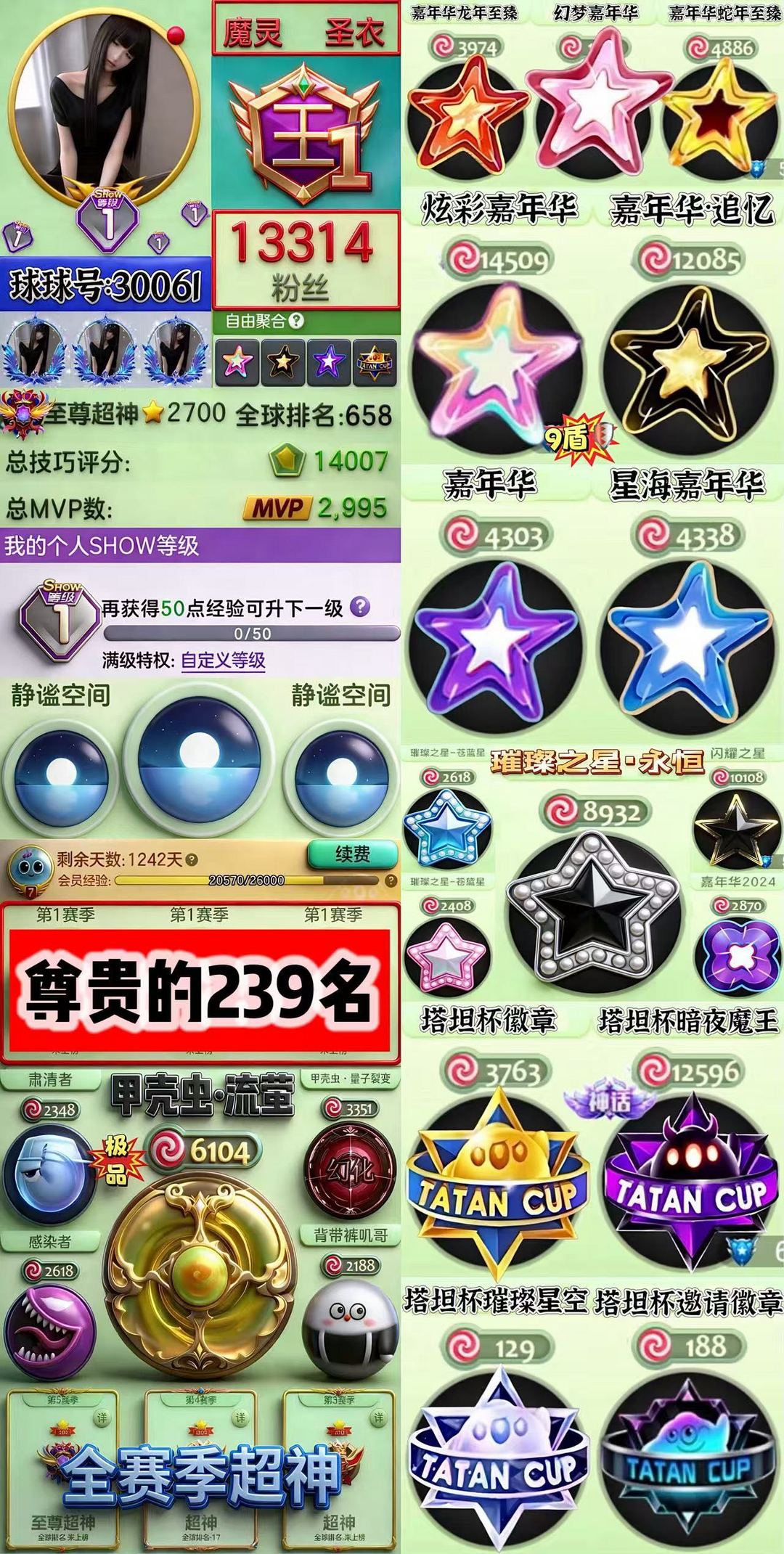 全服唯一❤️仅有尊贵的239名❤️满赛季嘉年华塔坦杯大满贯袍子,稀有璀璨永恒,静谧空间