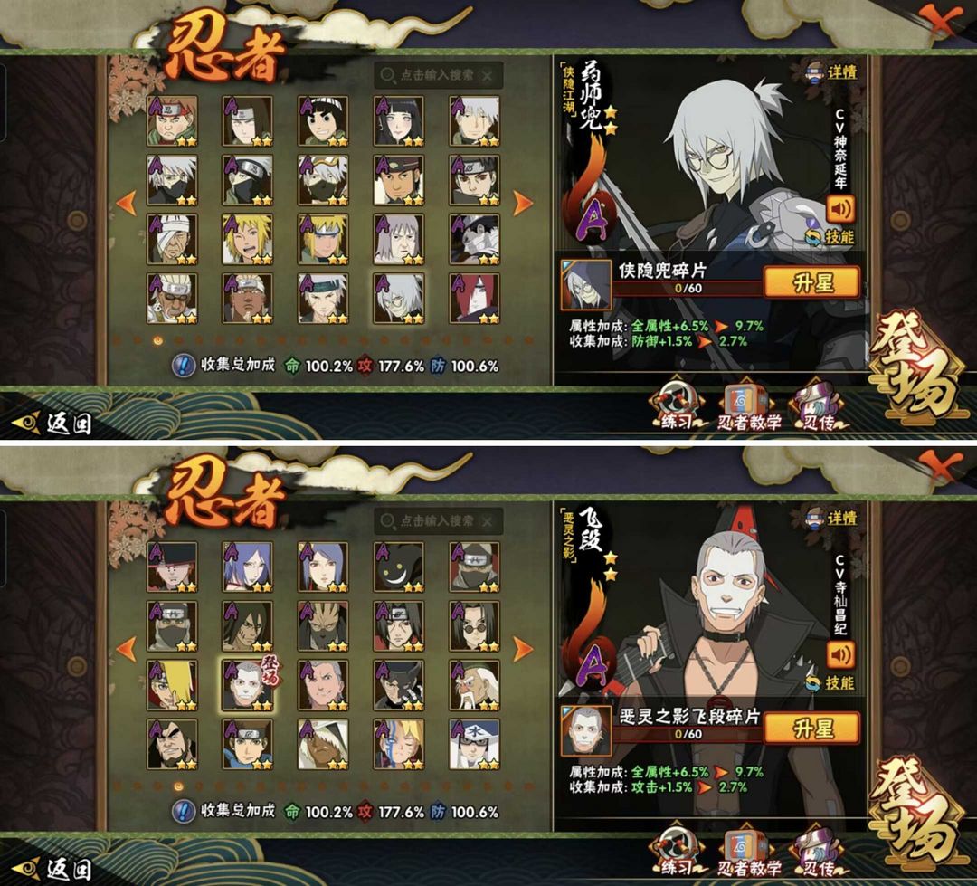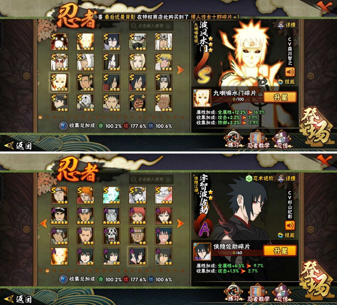 装备描述:全忍者✨3800万✨全忍者✨全通灵✨全奥义✨全皮肤✨全替身装扮✨全忍村街景✨全密卷✨战区攻击最高✨战区氪金最多