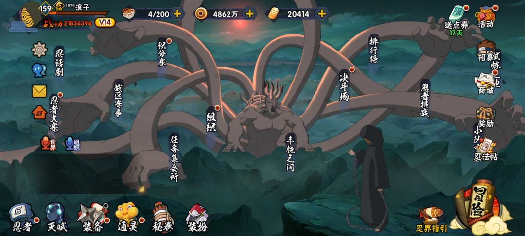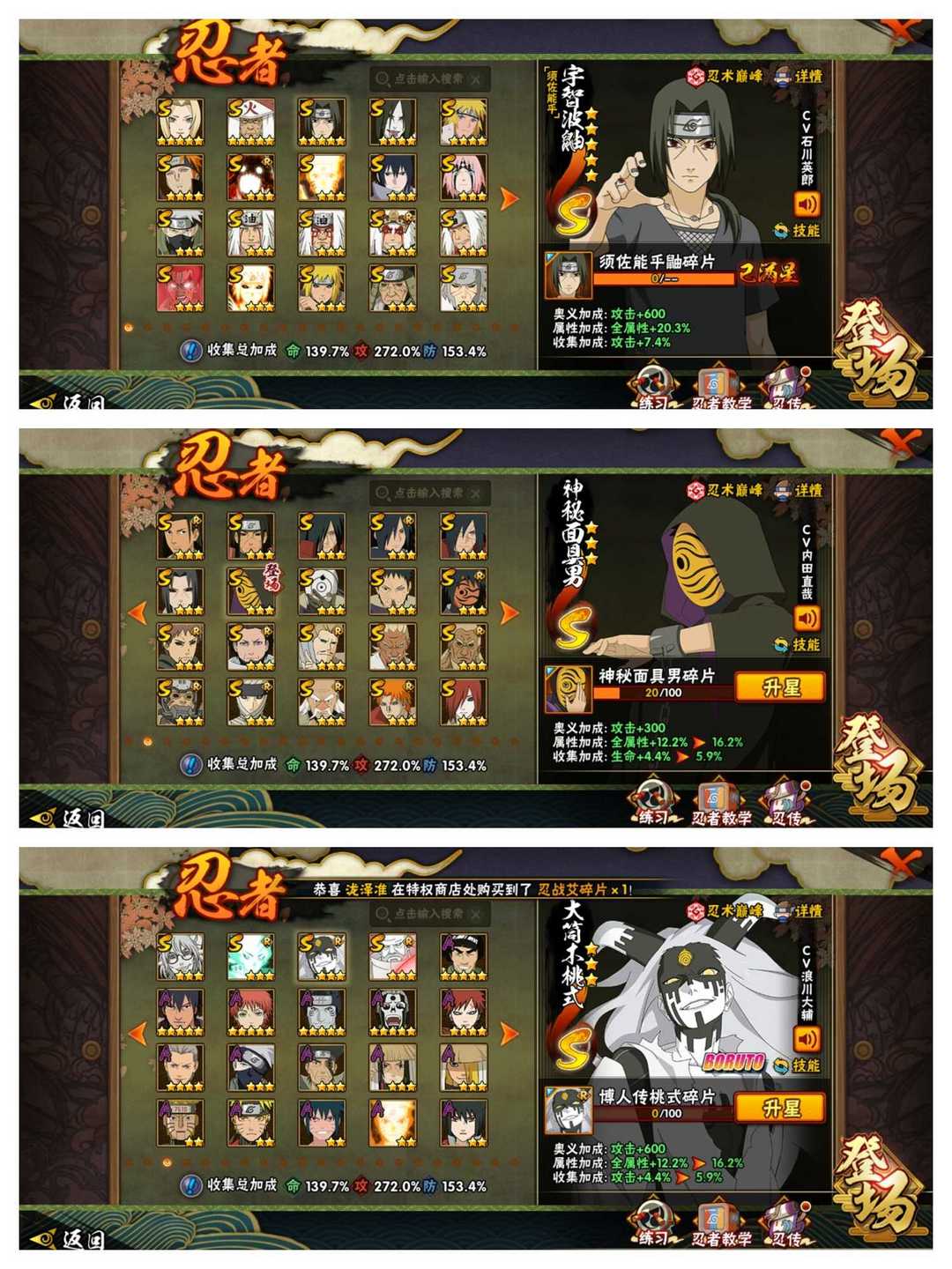 虎皮帽子,黑绝,妖怪纲手,新南,漂泊佩恩和带土,多328和点卷忍者,2200W战力44S77A