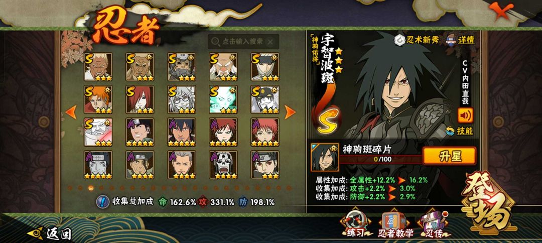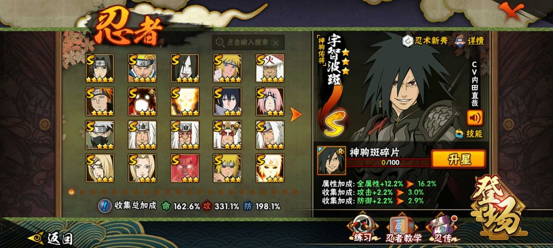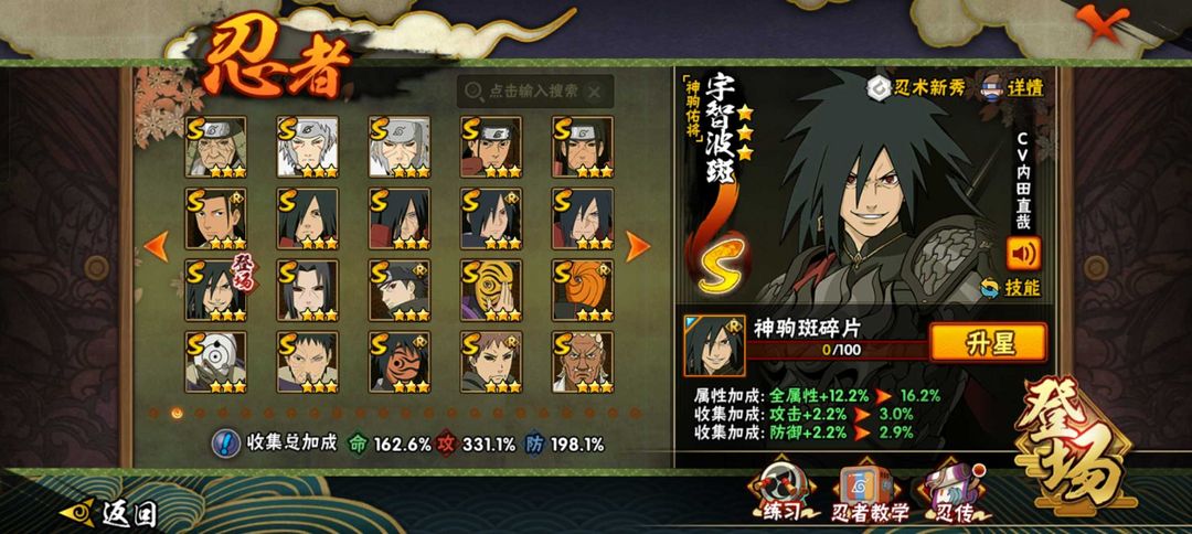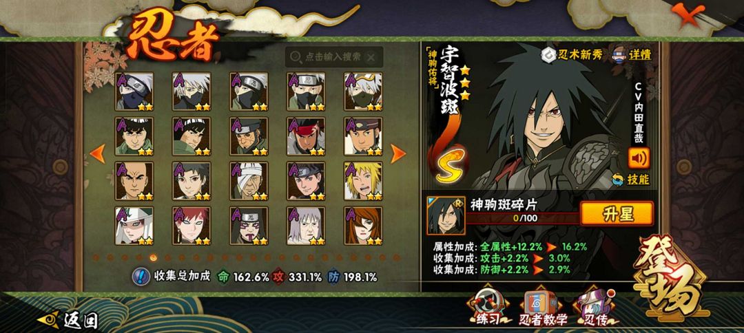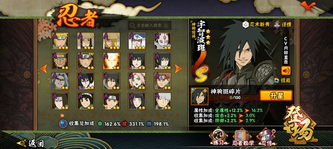 神驹斑51S101A五影会谈斑☀412全忍者☀六尾鸣人☀2450万☀侠隐佐助☀漂泊带土☀漂泊小南