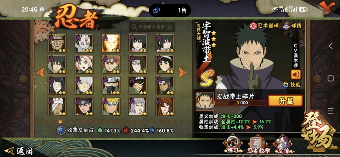 十尾人柱力带土3000w✨50s70a须佐卡卡西♍️创立斑♌️天道超♊️忍战带土全高招