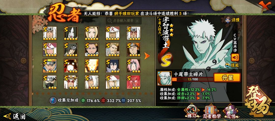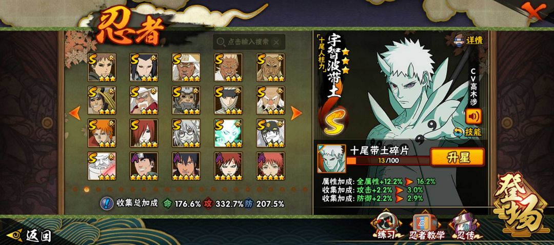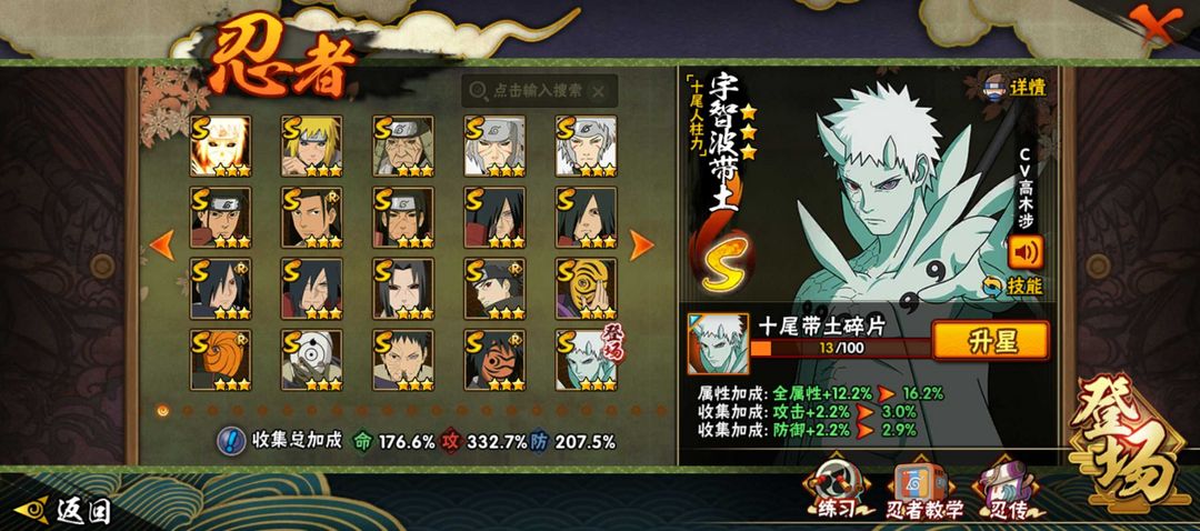 十尾带土✨56S✨95A✨全s✨三千万战力✨400全忍者✨超多时装奥义图入场特效✨