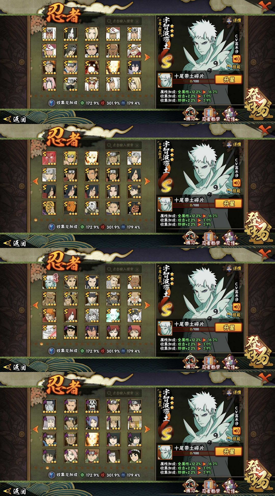 六道带土^全S忍•须佐止水•56S70A•A忍三废皮肤漂泊二代佩恩小南•2900万战力•忍战雷影