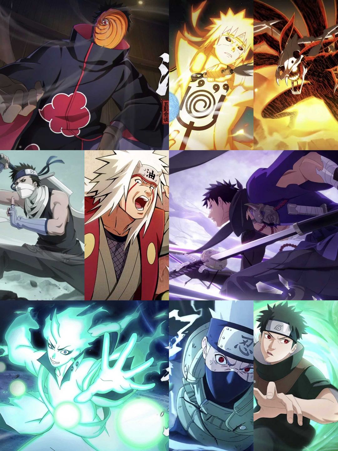 ♒五影会谈斑(带土)♒六尾鸣人♒漂泊带土♒金身水门♒初代风影♒再不斩全高招s/a♒3000万
