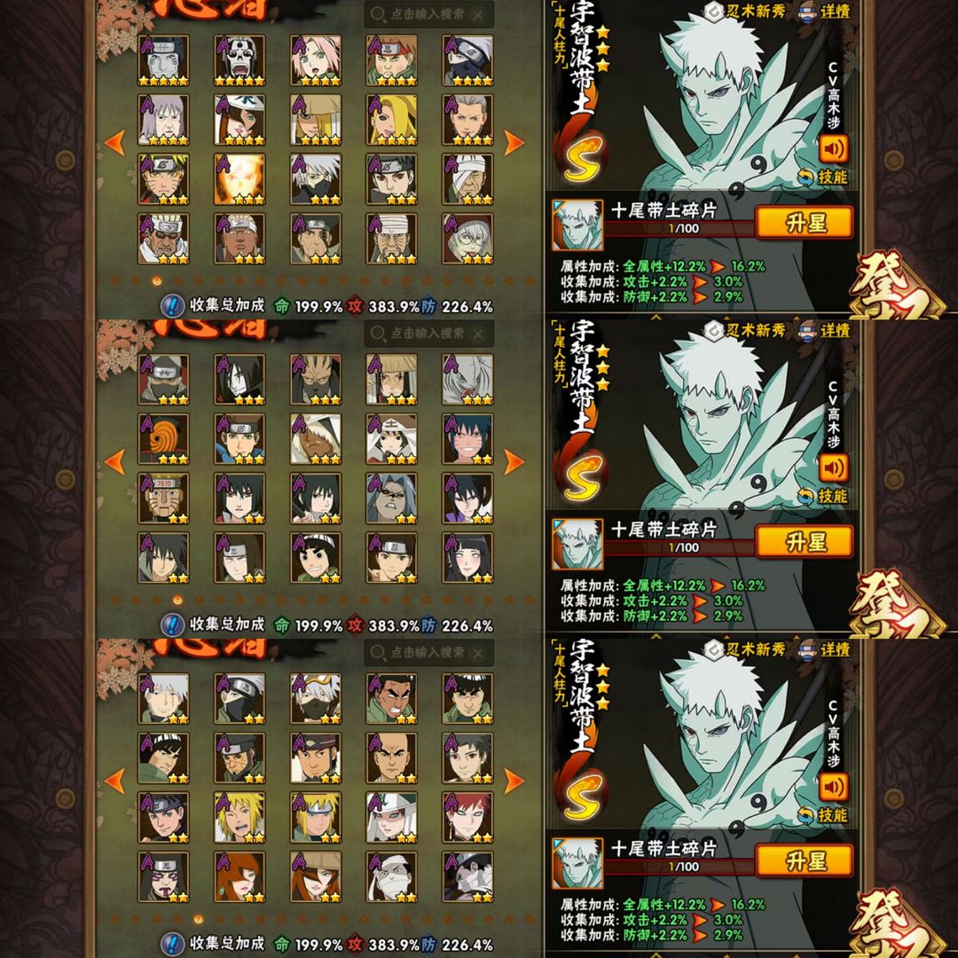 十尾带土❤️苹果56S❤️409忍全忍者❤️20万重磕❤️4200W带团❤️侠影佐助❤️61魅力