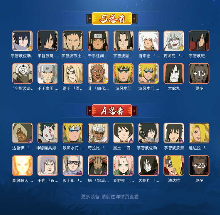 限制: 撤单率<1%才可租用此帐号装备描述:S忍者:宇智波鼬 「秽土转生」;猿飞日斩;春野樱 「忍界大战」;纲手;宇智波佐助 「永恒万花筒」;波风水门 「秽土转生」;艾 「四代目雷影」;自来也;宇智波带土 「忍界大战」;自来也 「舞之豪杰」;“宇智波斑” 「白面具」;神秘面具男 「红夜之刃」;千手柱间 「秽土转生」;纲手 「百豪」;迈特凯 「死门」;药师兜 「仙人模式」;神秘面具男;波风水门;宇智波斑 「秽土转生」;大蛇丸;千手扉间;自来也 「仙人模式」;千手扉间 「秽土转生」;长门 「秽土转生」;宇智波斑 「木叶创立」;猿飞日斩 「秽土转生」;宇智波鼬 「须佐能乎」