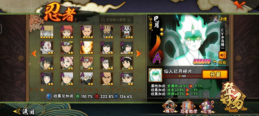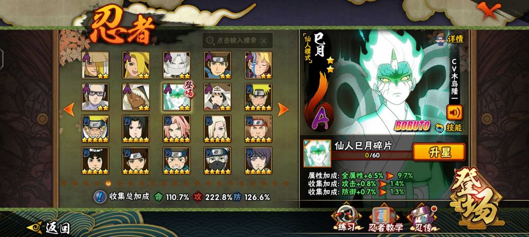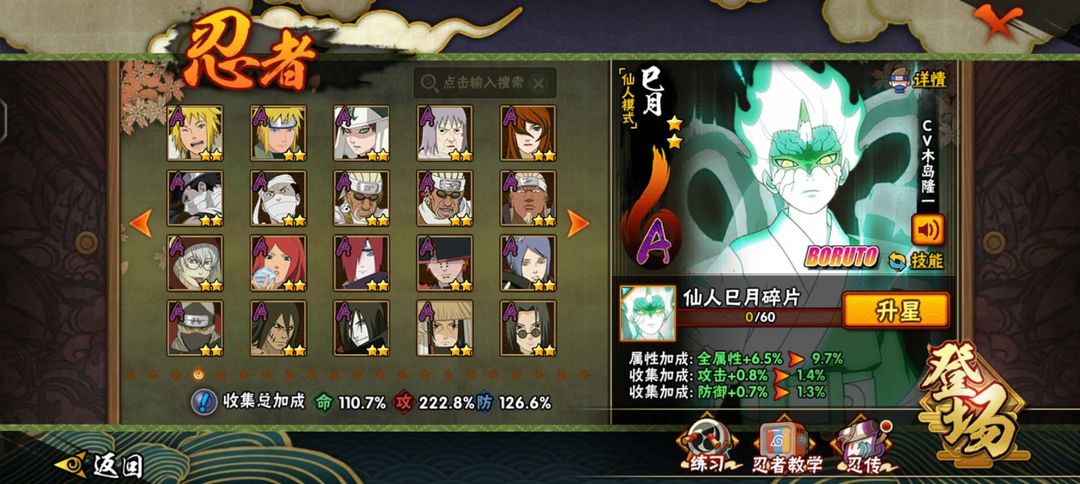 仙人巳月♐️九喇嘛水门♉️须佐止水♎️忍战雷影♏️忍战樱♍️死门凯♉️创立柱间
