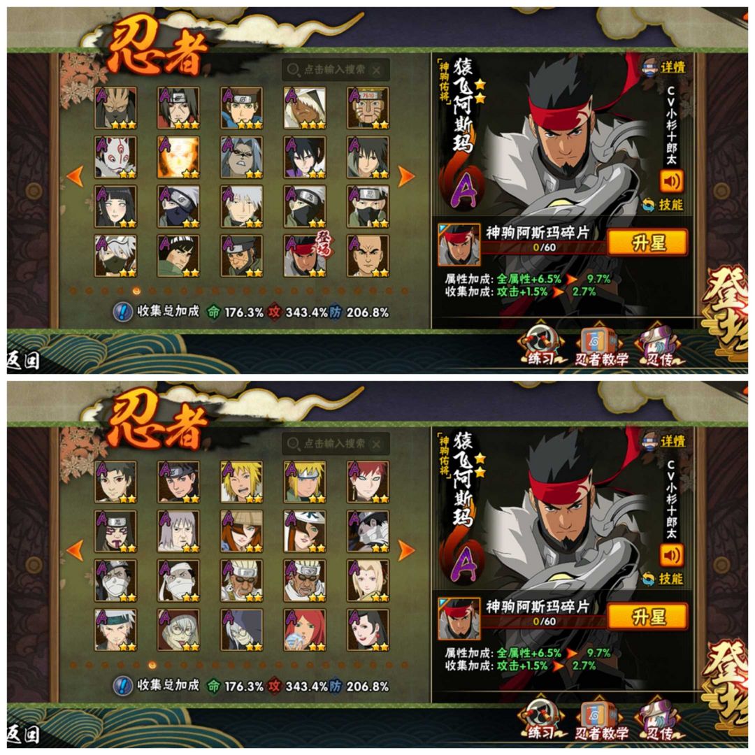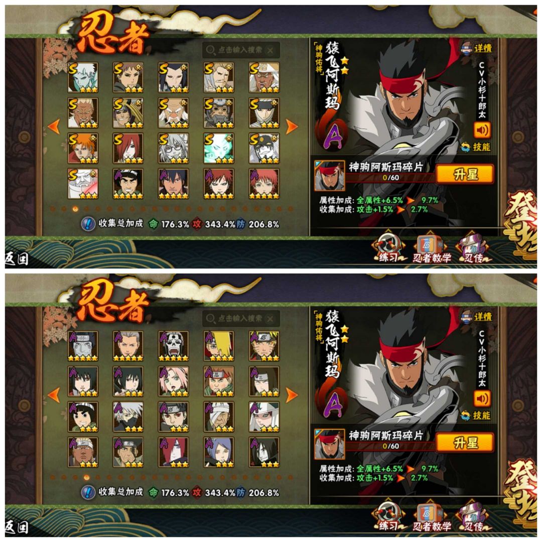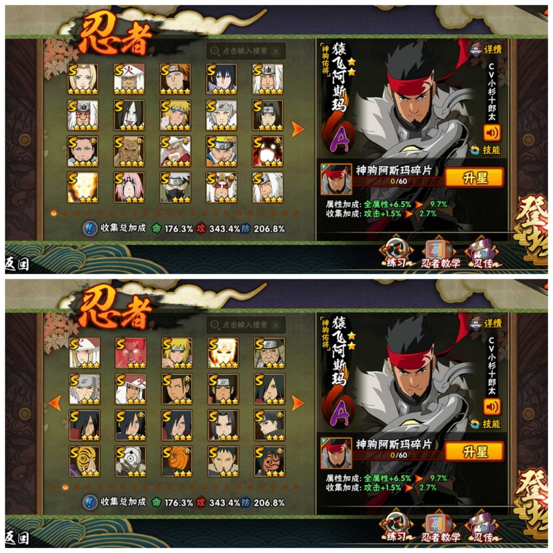 超多热门忍者✨56s 89a 391个忍者✨战力3200w✨神驹阿斯玛✨黑绝✨十尾带土✨侠影佐助