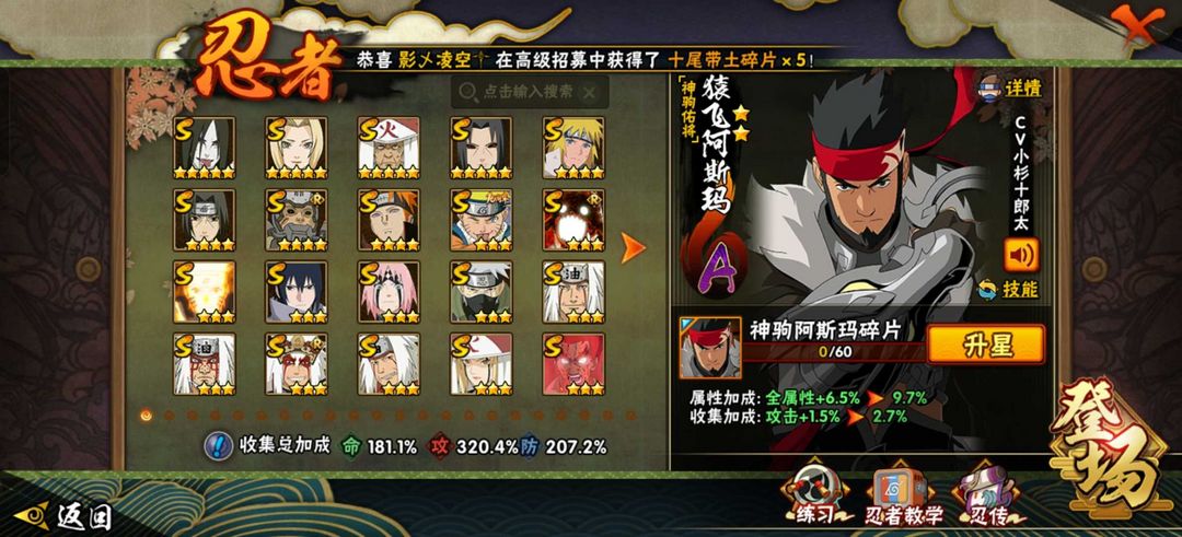 神驹阿斯玛 十尾带土 全S♈仙人巳月♈九喇嘛水门♈54S♈六尾鸣人♈传说自来也♈漂泊带土