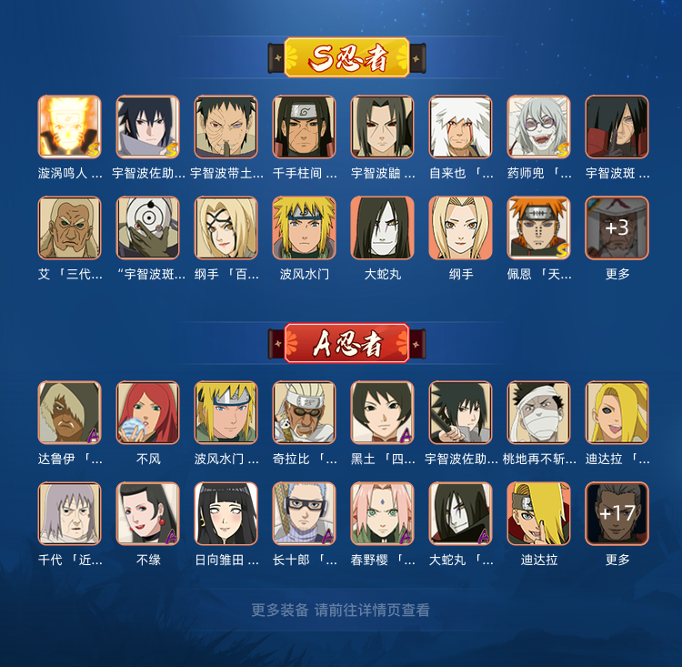 限制: 租号3次及以上 |装备描述:19S❤33A❤9732W❤九喇嘛鸣人❤永恒佐助❤创立柱间❤白面具❤红面具❤桃式博人❤
