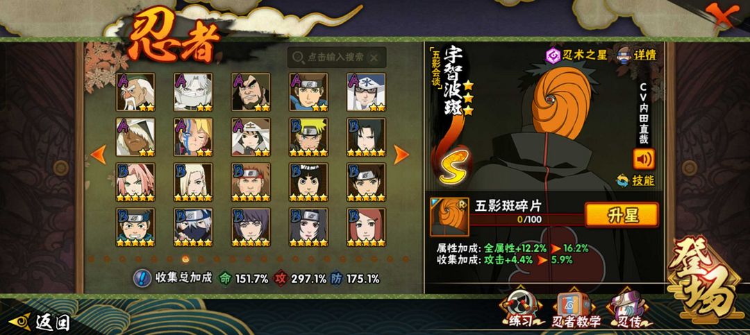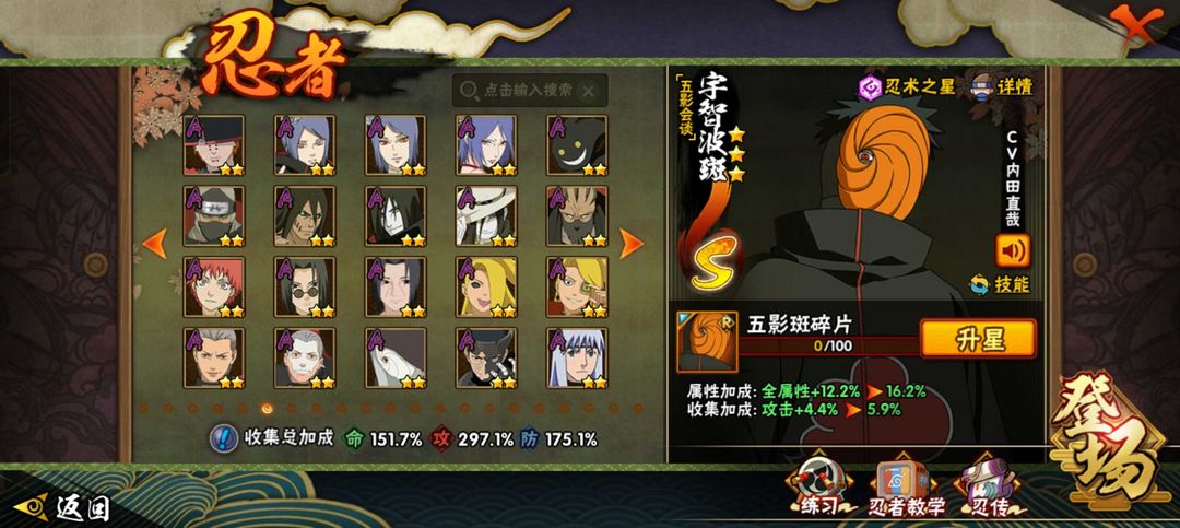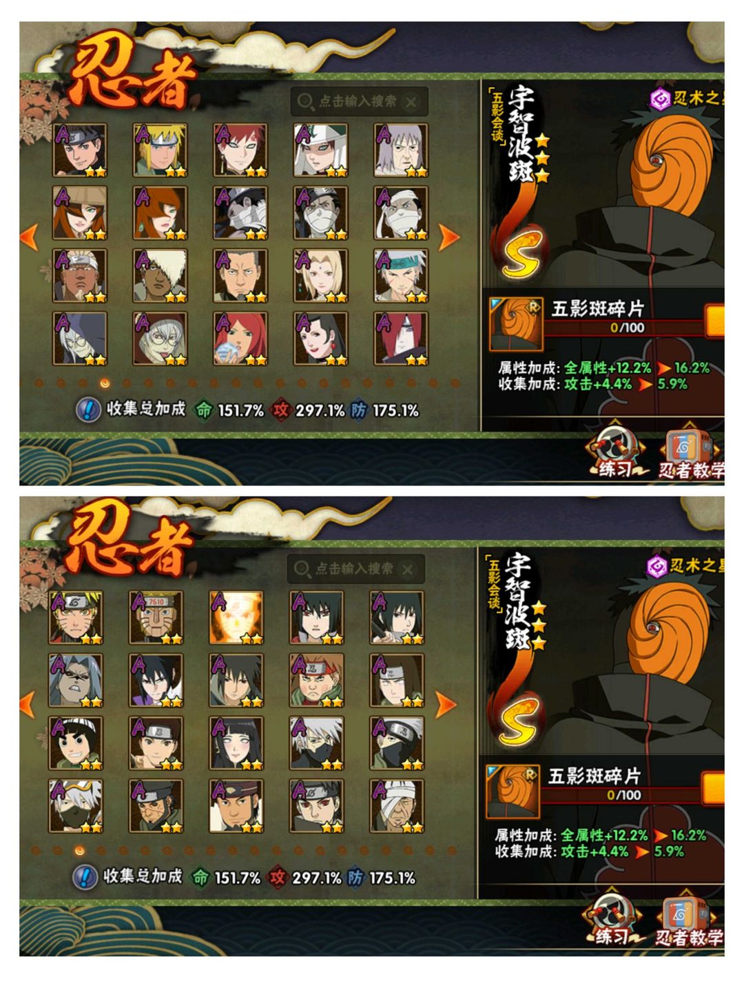 侠隐佐助黑绝☀️五影会谈斑☀️战区榜一380全忍者满通灵☀️漂泊带土☀️无上的忍道3000W