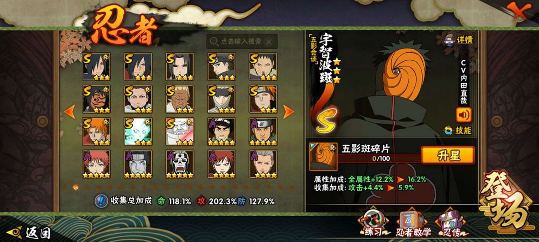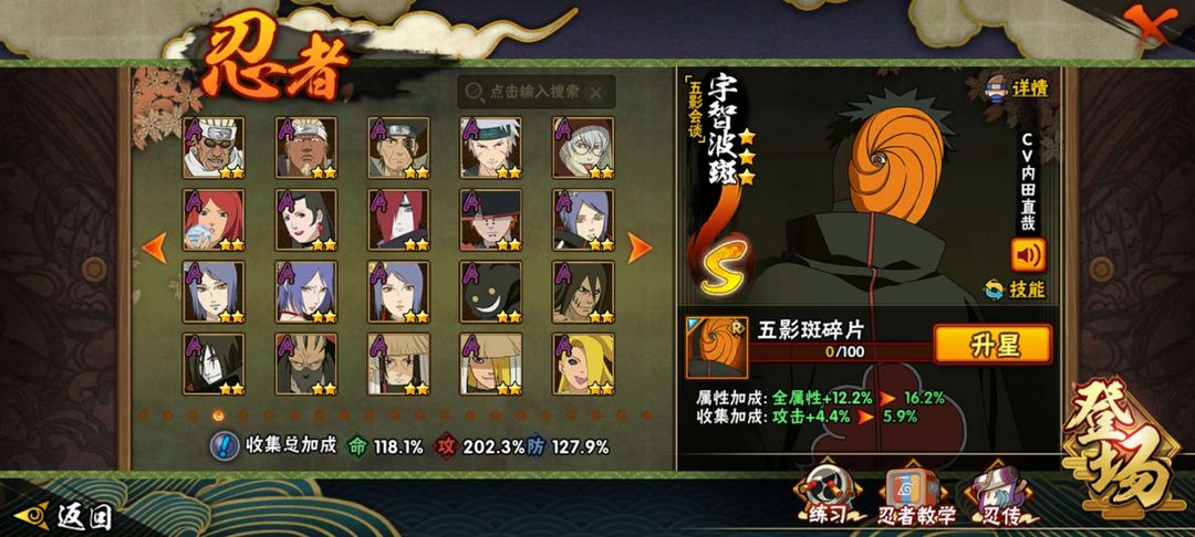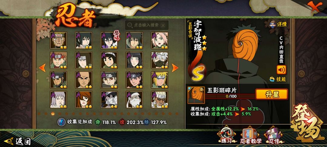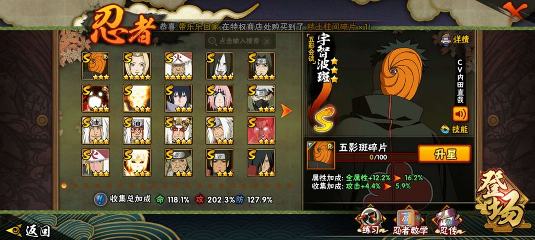 装备描述:32s58a仙人模式巳月,五影会谈斑,暴怒六尾鸣人,舍人,神农,1900万战力,漂泊小南,漂泊佩恩,须佐卡卡西,忍战带土,天道超,漂泊扉间,漂泊再不斩,恶灵飞段,漂泊系列全忍者,黑绝,夏日黑土,夏日卡卡西,二代目土影无,传说三忍自来也,九嘛喇水门