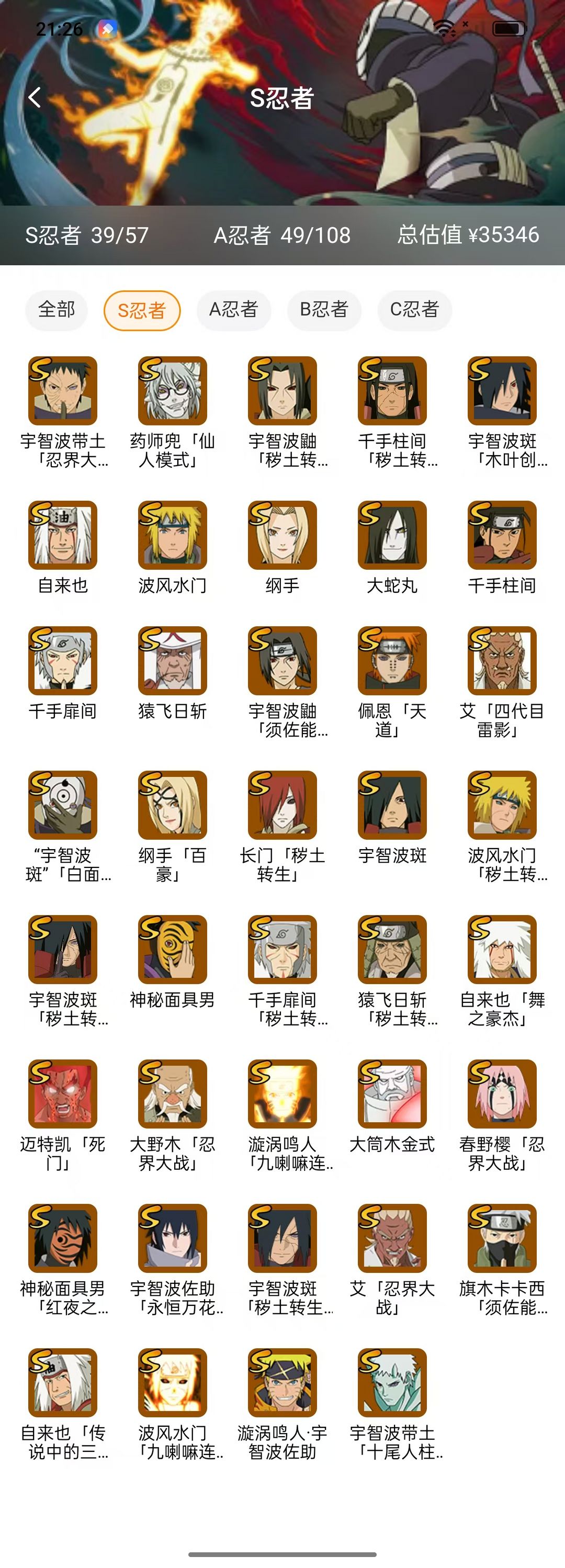 限制: 租号3次及以上 |装备描述:39S❤十尾带土❤忍战带土❤须佐卡卡西❤永恒佐助❤秽土解斑