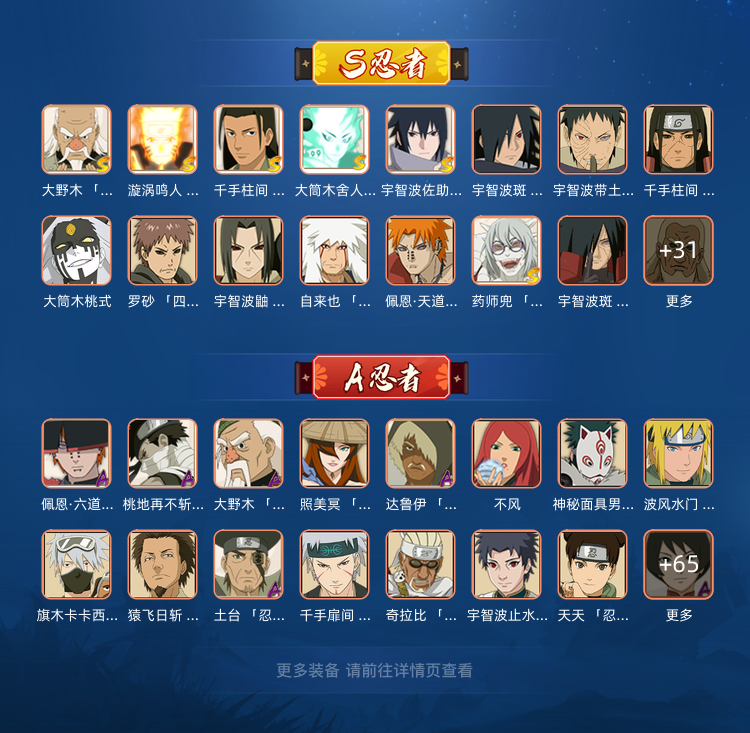 限制: 租号30次及以上 |装备描述:泳装鼬 秽土解斑 漂泊佩恩 漂泊小南 陆地战神扉间 忍界大战迈特凯 干柿鬼鲛鲛肌融合等热门忍者