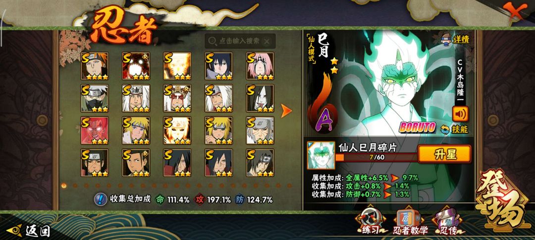 装备描述:热门高招s,仙人巳月以秒,漂泊带土,面麻,高招a全有,10级霸体