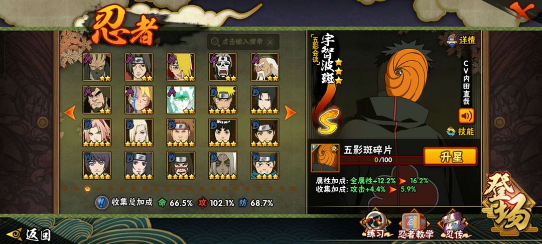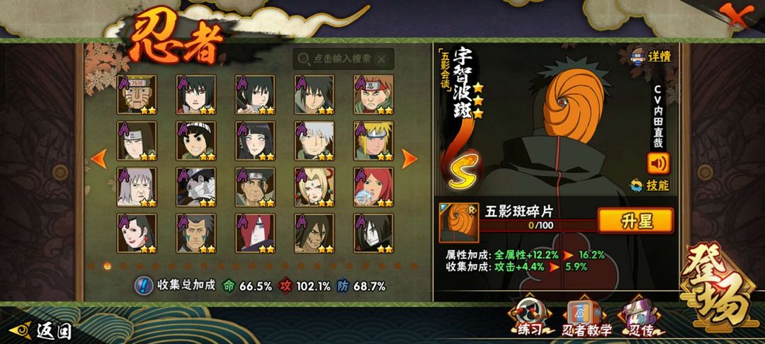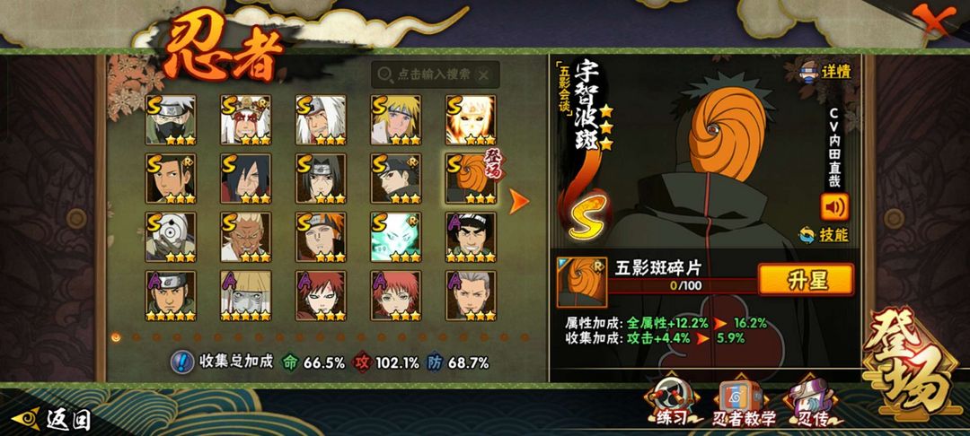14S★34A★五影斑★仙人巳月★九喇嘛水门★大筒木舍人★须佐止水★