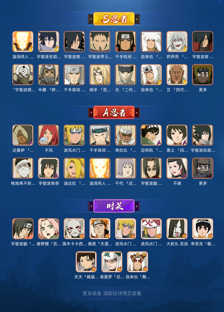 装备描述:30S50A忍战带土,漂泊扉间,漂泊带土,波风水门[秽土转生],多忍者畅玩,价格实惠