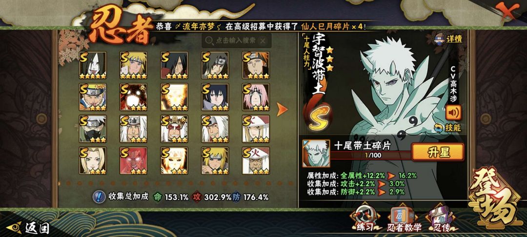 六道带土!仙人巳月!五影班。漂泊带土。48S忍,86A忍,超多点券A,佩恩。老忍法帖