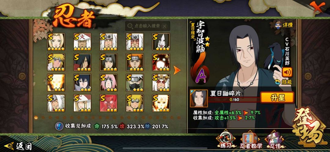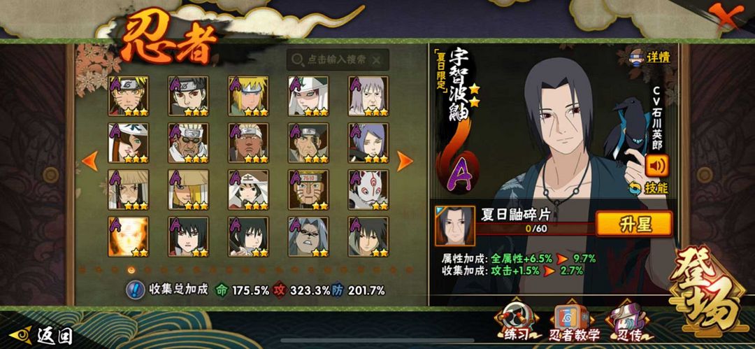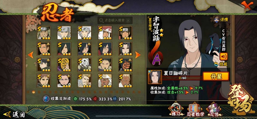 装备描述:400忍55s五影会谈斑 六尾鸣人 舍人 漂泊带土❤️桃式 ❤️ 紫狗✨ 盾狗 恶灵飞段 创立顶配