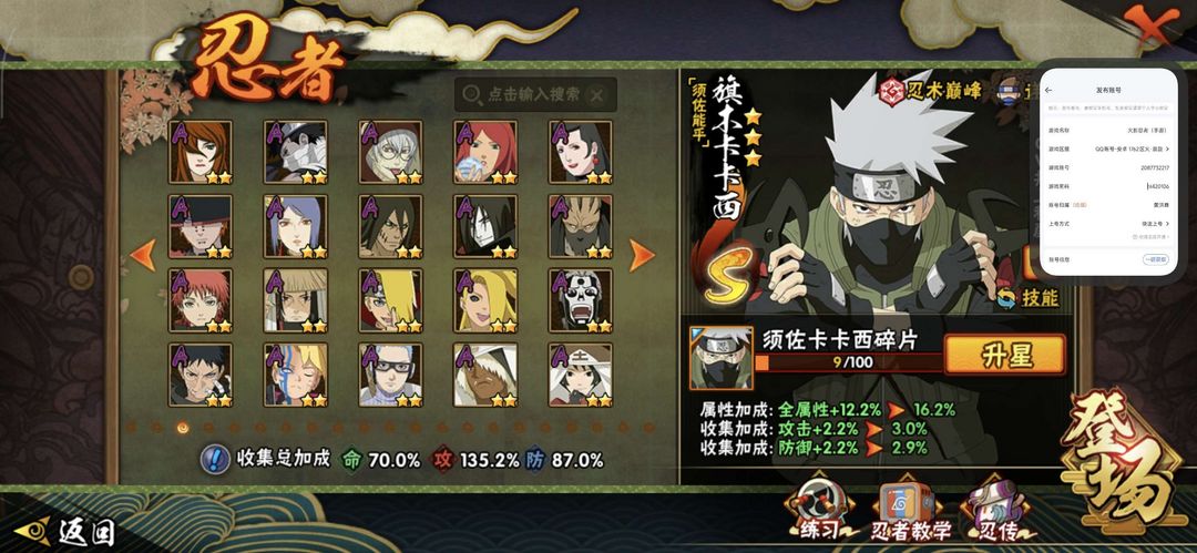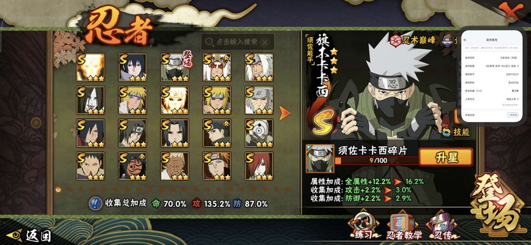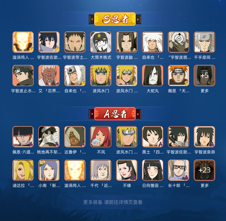 装备描述:金身水门,秽土长门,破面,骨架,红叶带土,永左,漂泊带土,漂泊佩恩,新春小南20S
