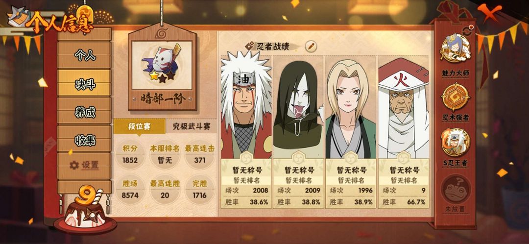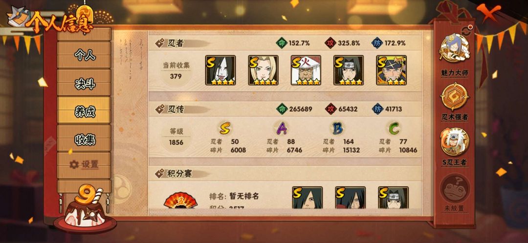 51s❤️88a❤️,漂泊带土,面麻,各种限定忍者,点券忍者应有尽有,魅力70级,战力2225w