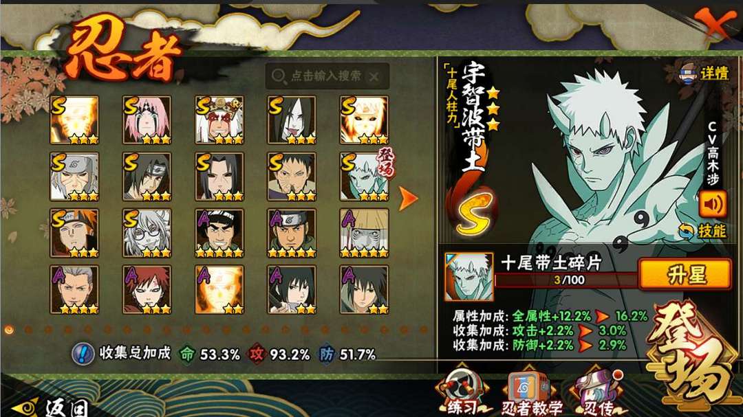 装备描述:全新S宇智波十尾带土,鸣人九喇嘛,忍战带土,秽土鼬,秽土扉间,忍战樱,仙人兜,大蛇丸,自来也,达鲁伊,抢先体验,号主不会上号,被顶多上两次就行!!!!