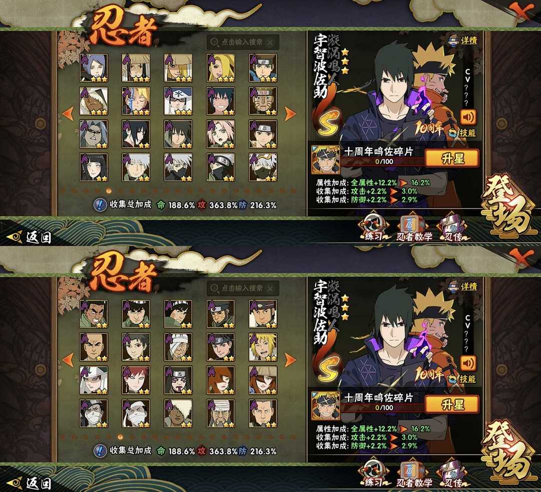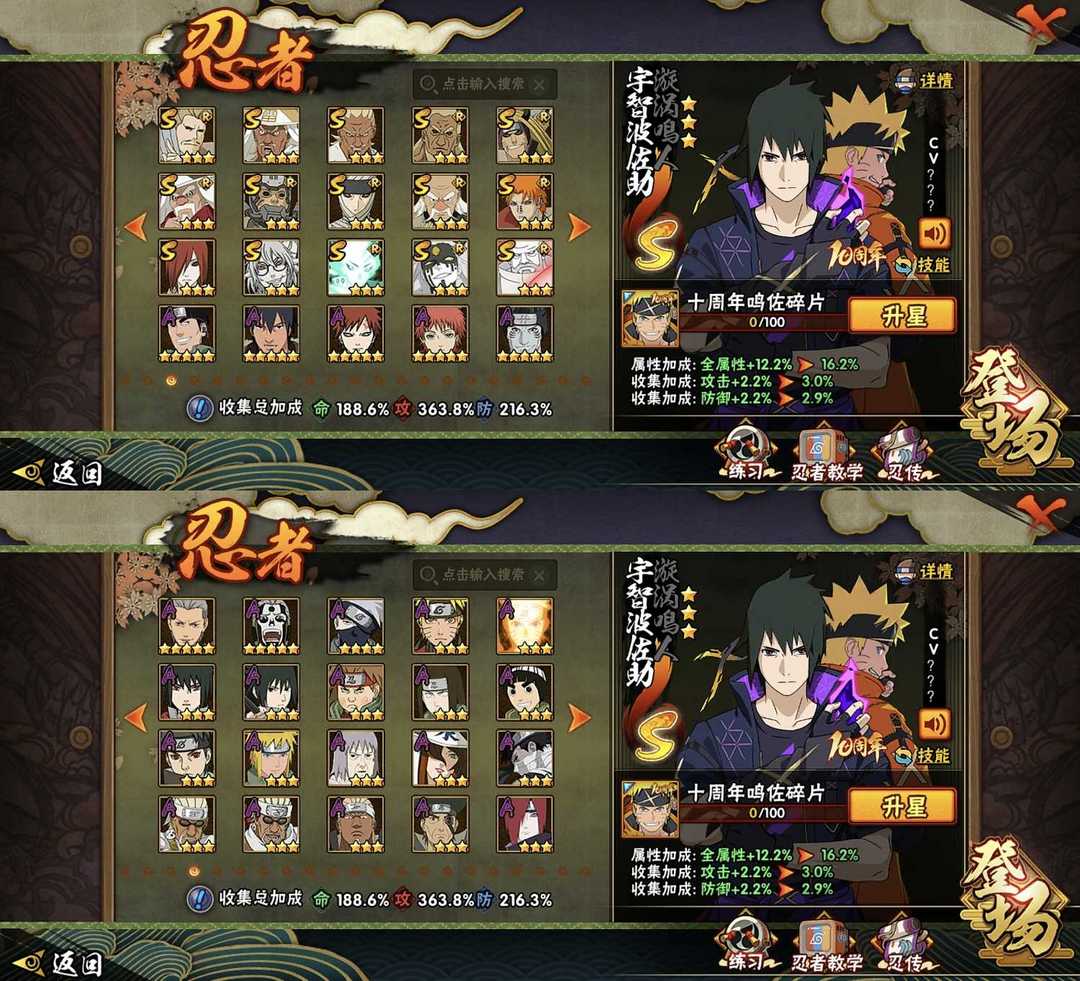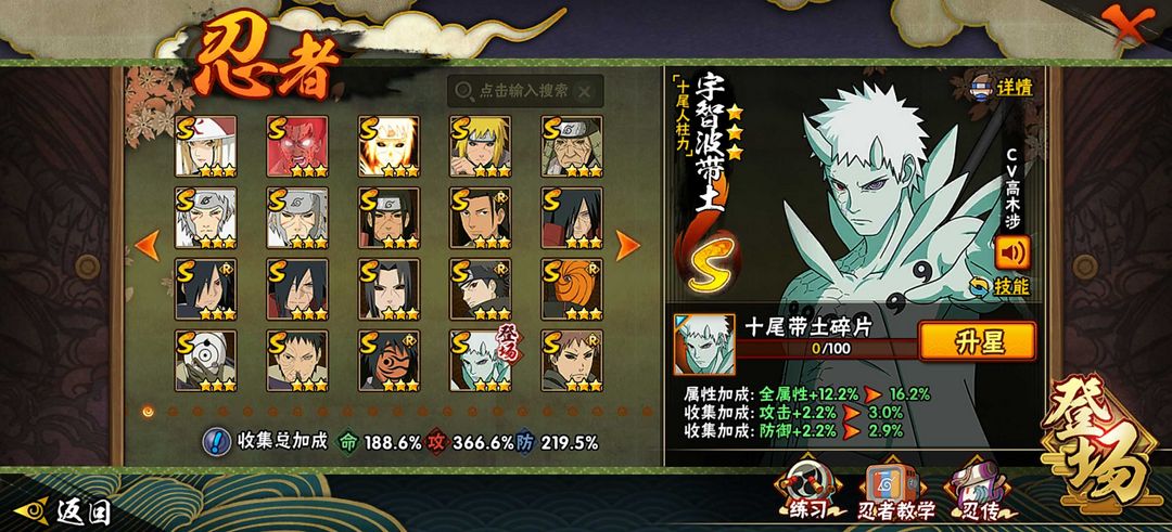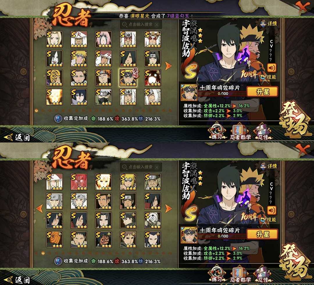 六道带土已秒✨九尾水门✨✨须佐卡卡西✨忍战雷✨418忍✨全高招s✨全高招A⭐️烈斗✨三代风✨