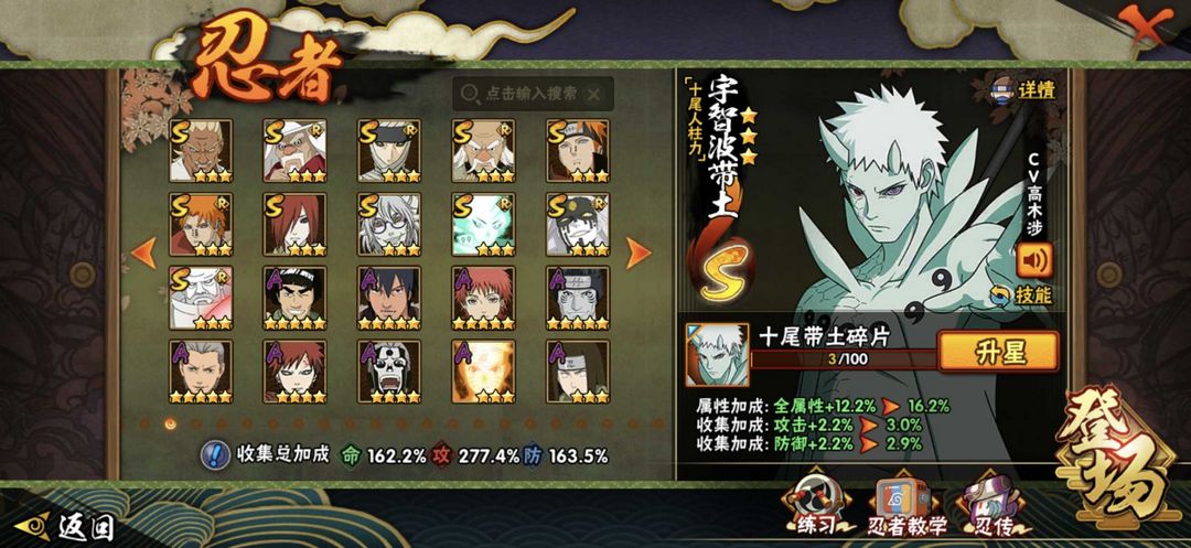 十尾带土51S♥69A全高招s全高招a⭐五影斑⭐漂泊带土⭐六尾⭐黑绝⭐天道超⭐侠隐佐助