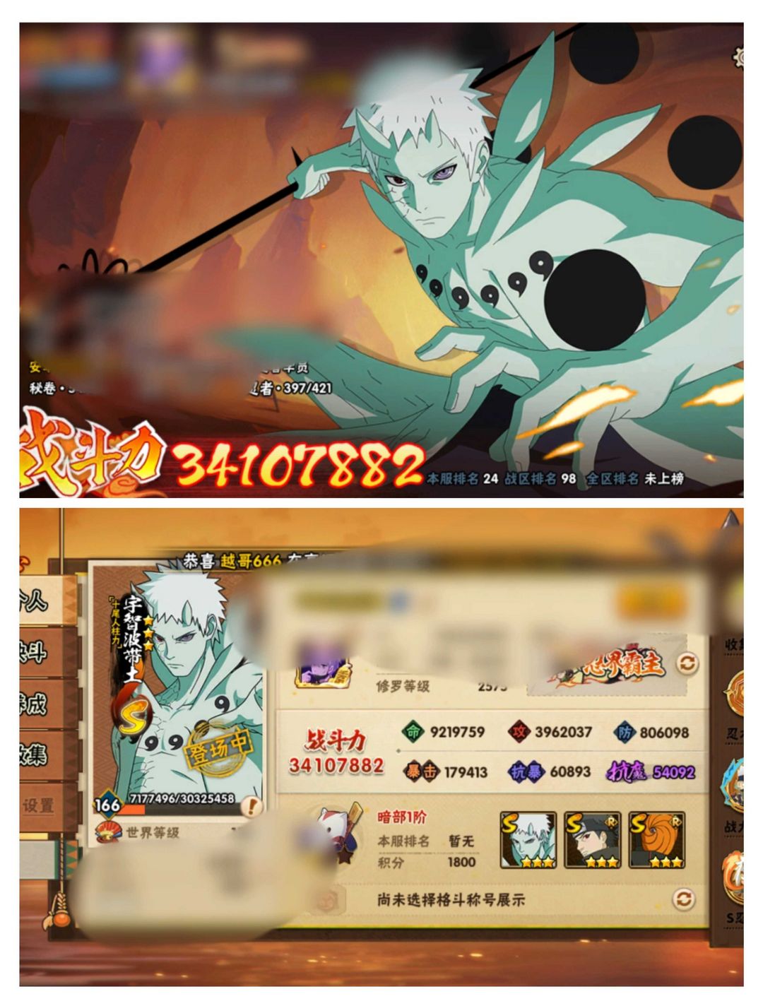 397全忍者☀六道带土☀3400万高战☀55S91A☀九喇嘛水门☀五影会谈斑☀六尾鸣人☀须佐止水