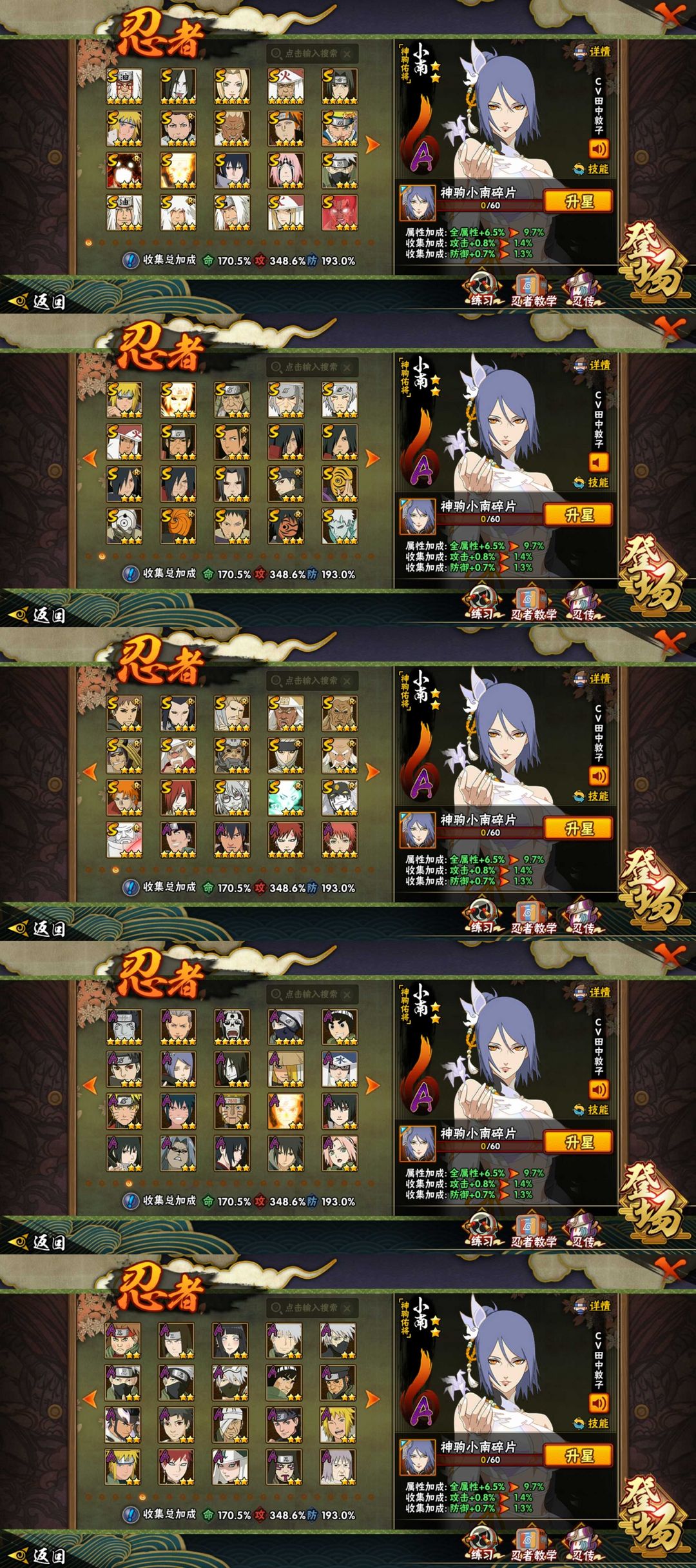 装备描述:浮生小租○更多优质账户欢迎光临 收藏店铺不迷路▲ 多忍者 忍者328+ 2700w战力 多皮肤 多胜利入场特效 58魅力值 应有尽有 忍者第一时间秒全套 欢迎收藏体验 此账号为快速上号,一键登录,如有无法登陆情况,重进火影登陆界面,租号玩一键上号即可 禁止恶意撤单,白嫖等行为会直接拉黑。新店开业欢迎收藏