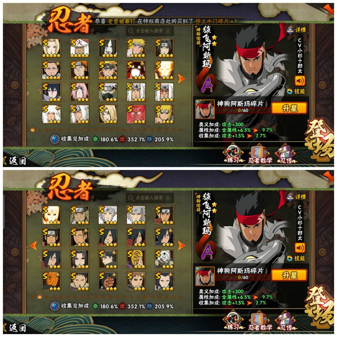 装备描述:欢迎来到超影租号小店,火影能带来快乐也你带来自闭。有梦想你也许就是火影忍者下个超影♥ 账号如标题。忍者看上图。不要动金币跟高招卷。 。账号可以段位赛。 喜欢的话点收藏。 祝你游戏愉快O∩_∩O