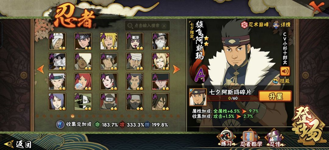 装备描述:欢迎来到超影租号小店,火影能带来快乐也你带来自闭。有梦想你也许就是火影忍者下个超影♥ 账号如标题。忍者看上图。不要动金币跟高招卷。 。账号可以段位赛。安卓183区。 喜欢的话点收藏。 祝你游戏愉快O∩_∩O