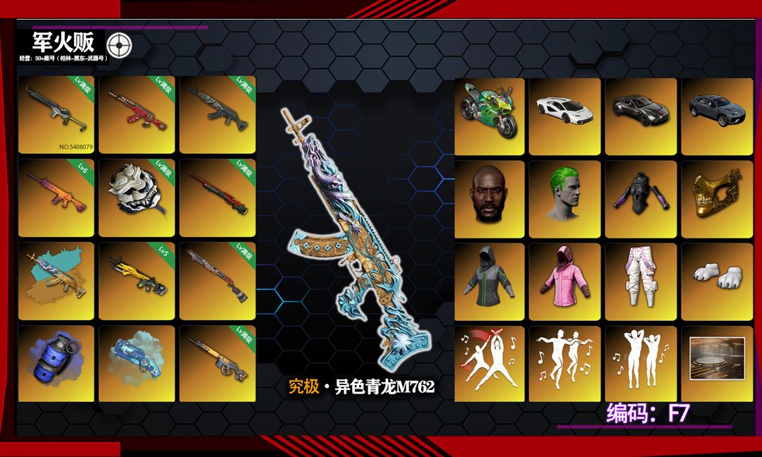 装备描述:找客服拿令牌码!!!!!!网吧电脑重启再玩以防外挂残留!请勿击杀队友,开挂,鼠标宏芯片,分解饰品,恶意毁号。违反者必定拉黑,平台封杀。互联网制时代,切勿以身试法。 24小时在线监控,违反规定直接扣所有租金并踢下线,被封必追究法律责任。温馨提示~不可利用此号行骗、卡BUG、恶意击杀队友、使用或浏览外挂等第三方软件~违反将会扣押金及租金~电脑有外挂第三方的请勿租用。杜卡迪-迈凯伦-兰博基尼-阿斯顿马丁-青龙M72-美杜莎-异色AUG-火麒麟-柏林-可排位时光加农SKS魔咒之力MK12塞壬平底锅刻耳柏洛斯M249美杜莎BERYLM762弥诺陶洛斯AUG午夜惊魂KAR98K无重力MP5K-无信号M416德拉贡诺夫爆裂AUG沙悟净MINI14猪八戒孙悟空M24圣诞AKM小兔巡逻队MK12危险玩偶屋SLR霓虹之梦 AUG武SKS青龙M762朱雀M416恶魔猎手ACE彩虹之上M24黑暗深渊M762危机MK12猛虎猎手KAR98K铃儿响叮当MiNI14不给糖就捣蛋锯齿收割者齿轮头M762妖魔之触 ACE32柏林黑东红东战神白运动裤J9哔站菠萝T大魔王手套丑男丑女大金标网鱼白运动发光手臂电磁背包渣男头粉