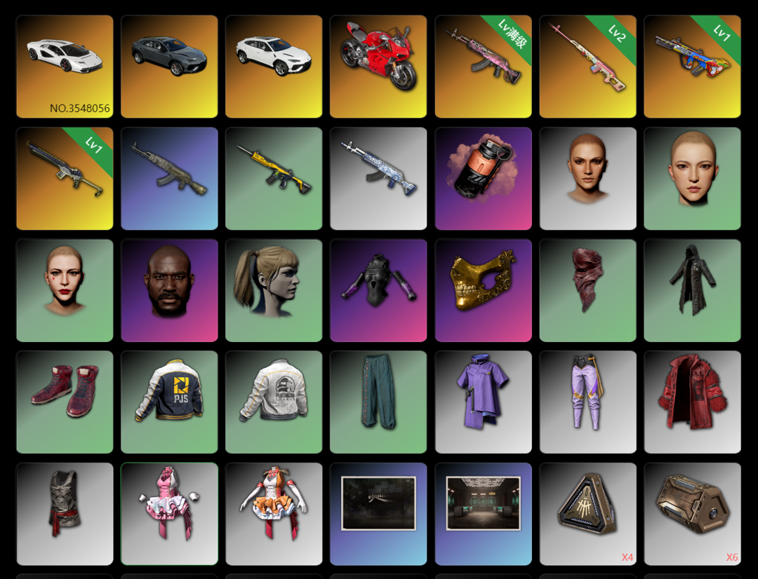 装备描述:---家里不要租 家里电脑玩不了--- 满兰博基尼/黄金烙车漆/杜卡迪/满级火麒麟/魔咒之力MK12/沙悟净MINI/爆裂AUG/粉梦德拉贡/彩色烟雾弹/黑鬼/萨芬裤/大金牙/发光套/悟空套/唐三藏套/绷带AKM/魔力甜心全套