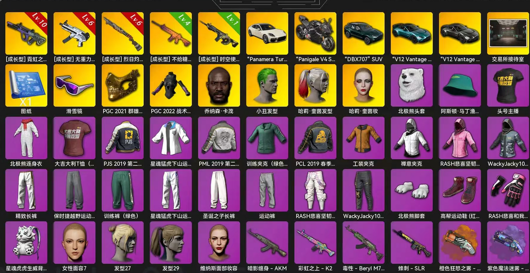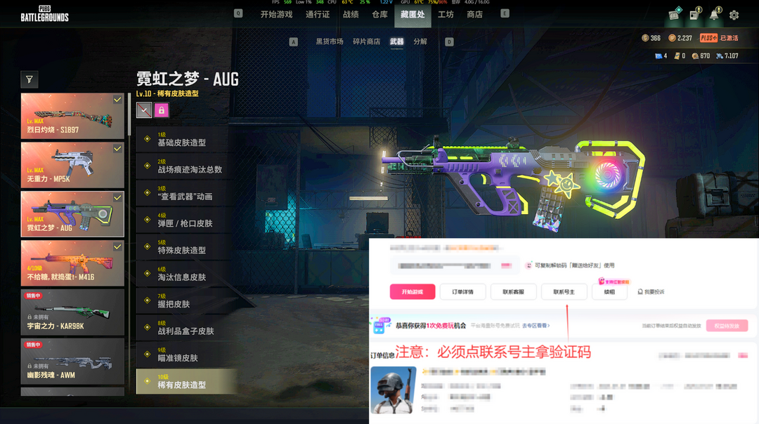 ⭐保时捷⑩霓虹之梦AUG⑥烈日灼烧-S1897⑥无重力-MP5K④捣蛋鬼M4黑鬼小丑头金面滑雪镜
