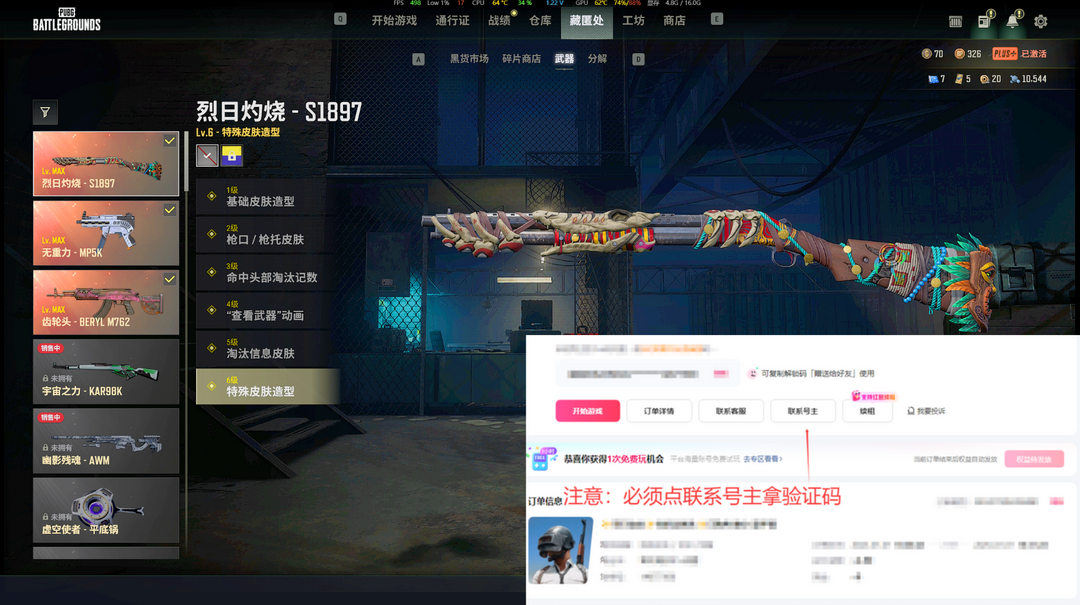 ⭐⑩火麒麟762⑥烈日灼烧-S1897⑥无重力MP5K小黑盒手套黑鬼小丑头可可套星魂白女团