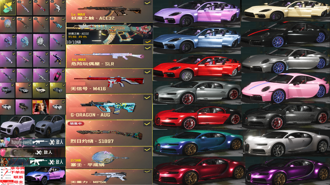 全跑车布加迪威龙保时捷911帕拉梅拉卡宴✅⑩异色ACE妖魔⑩玩偶炮满级瀚娜信号烈日黑人柏林滑雪可排位